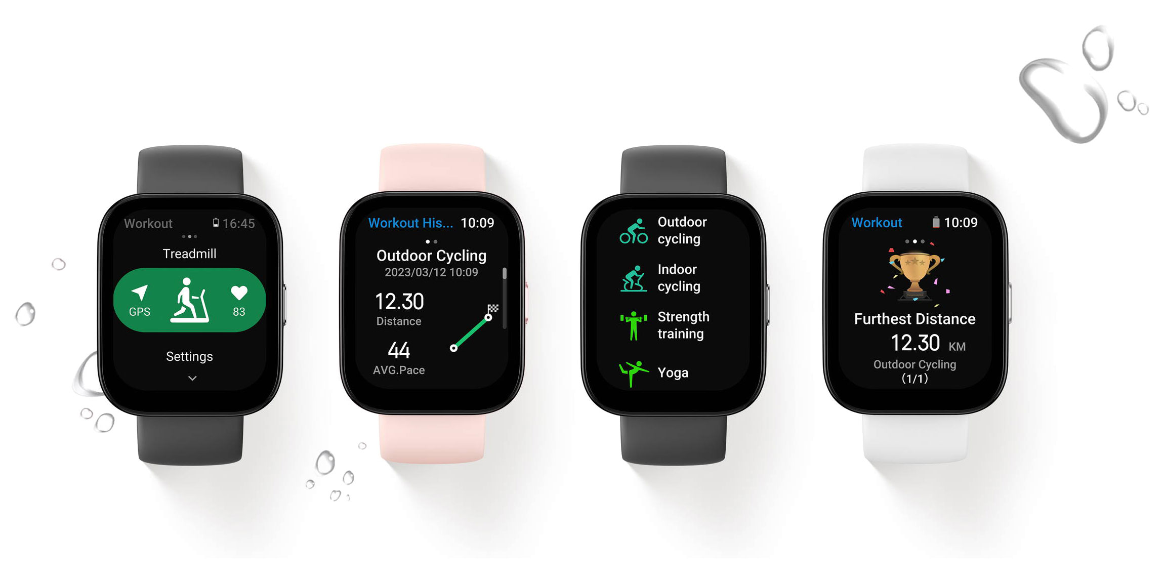 Hodinky lze pochopitelně použít k záznamu a měření sportovních aktivit. Podporují více než 120 druhů sportů, přičemž sedm z nich (venkovní běh, běh na běžeckém pásu, chůze, chůze v interiéru, cyklistika, cvičení na veslovacím a eliptickém trenažéru) umí detekovat automaticky. Během cvičení se nemusíte obávat vody, deště ani sněhu, neboť Bip 5 mají deklarovanou zvýšenou odolnost dle standardu IP68.