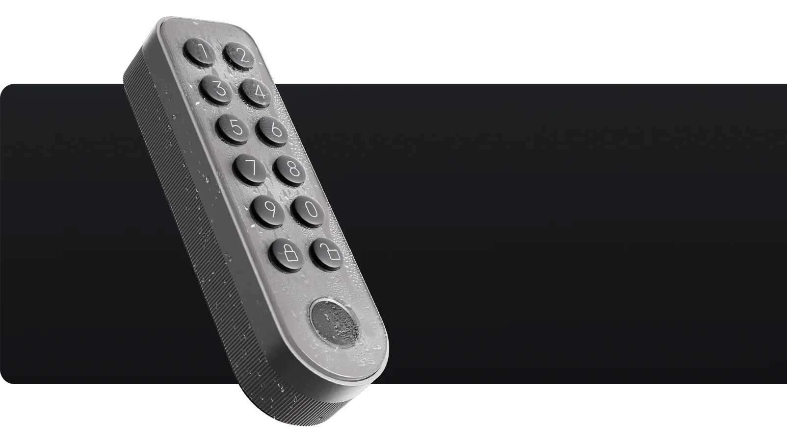 K zámku patří také externí klávesnice, která je o něco menší – měří 133 × 40 × 29 milimetrů a váží 147 gramů. Ta je napájena dvěma tužkovými bateriemi typu AA. Velmi praktickou vlastností je její odolnost proti prachu a vodě dle standardu IP65. To znamená, že je plně prachotěsná a odolá i tryskající vodě, takže bez problémů zvládne déšť či jiné nepříznivé povětrnostní podmínky.