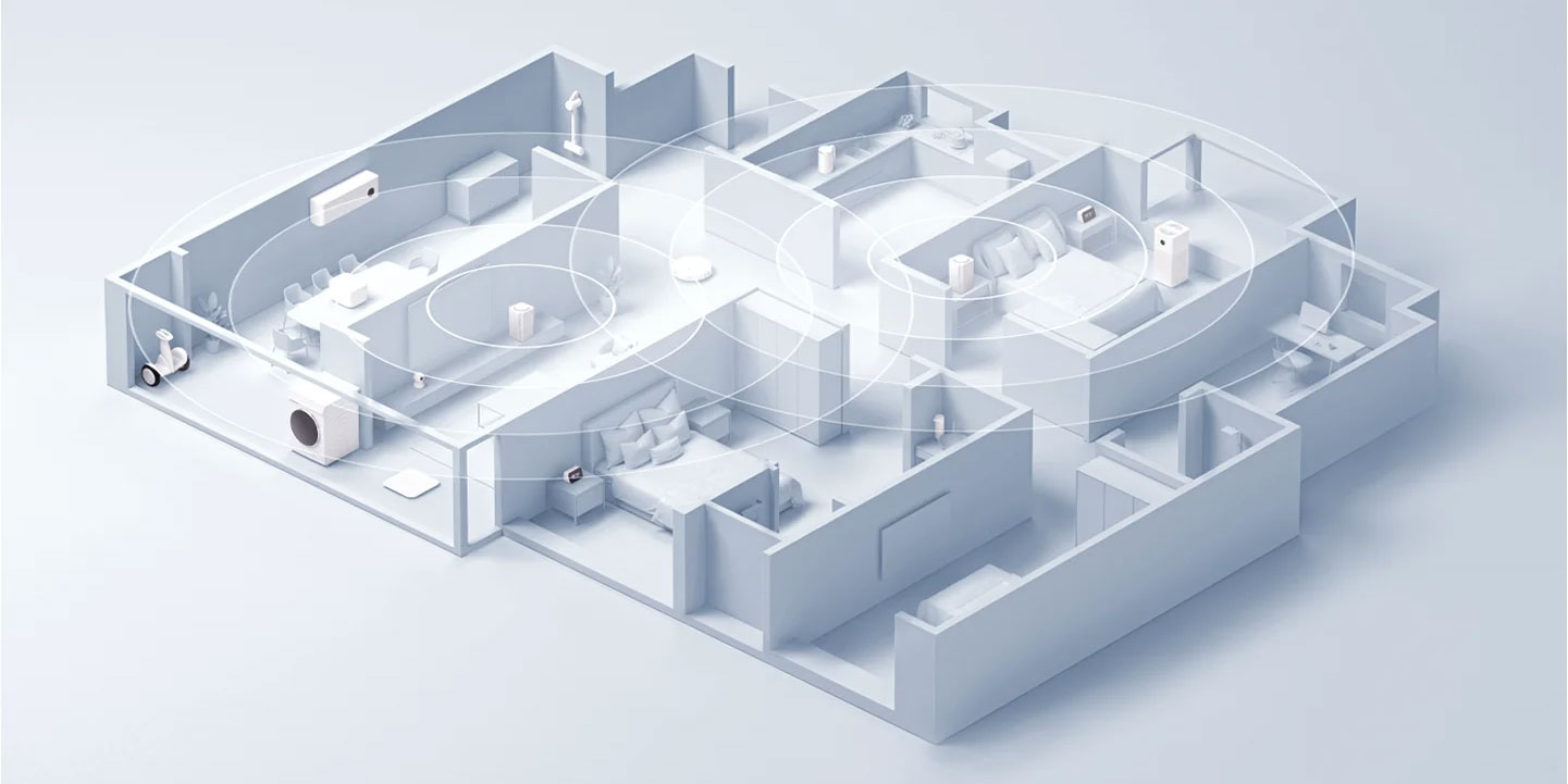 Xiaomi Mesh System AC1200 využívá pro bezproblémové a chytré propojení technologii Xiaomi Mesh. Tato technologie umožňuje propojení více routerů a vytvoření sítě s kabelovým, bezdrátovým nebo hybridním propojením. Díky minimálnímu času přepínání mezi jednotkami a automatické optimalizaci sítě poskytuje nepřetržitý Wi-Fi signál po celém domě.