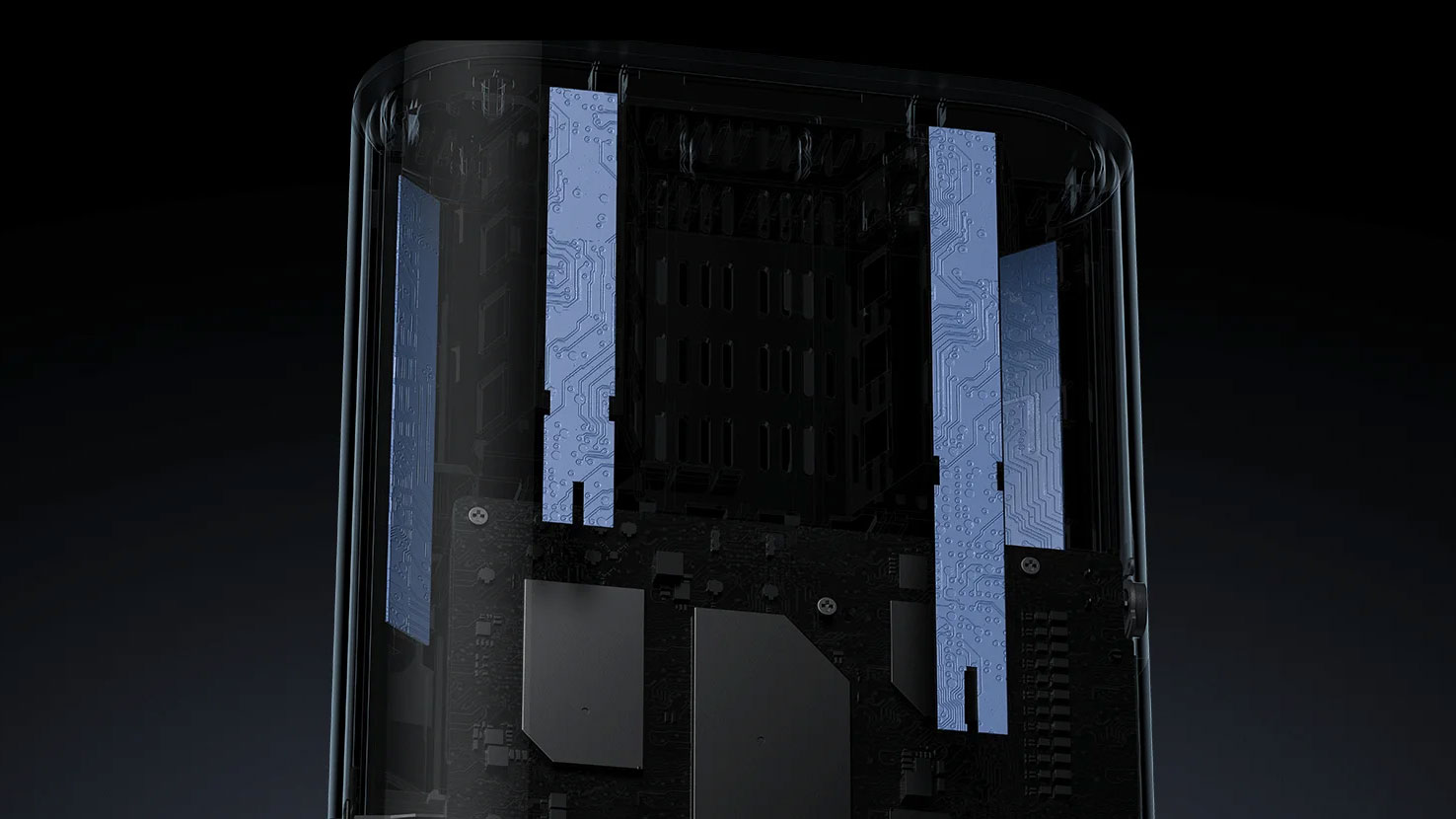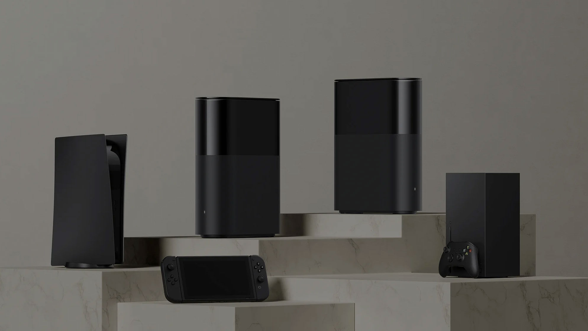 Router se vyznačuje minimalistickým designem s tmavě šedým provedením a hladkými liniemi, díky čemuž snadno zapadne do každého interiéru. Absence viditelných antén není jen estetickým tahem – jejich vnitřní struktura je optimalizovaná pro maximální výkon signálu a spolehlivost. Tato optimalizace přináší výhody v podobě snížení rušení a vyššího výkonu.