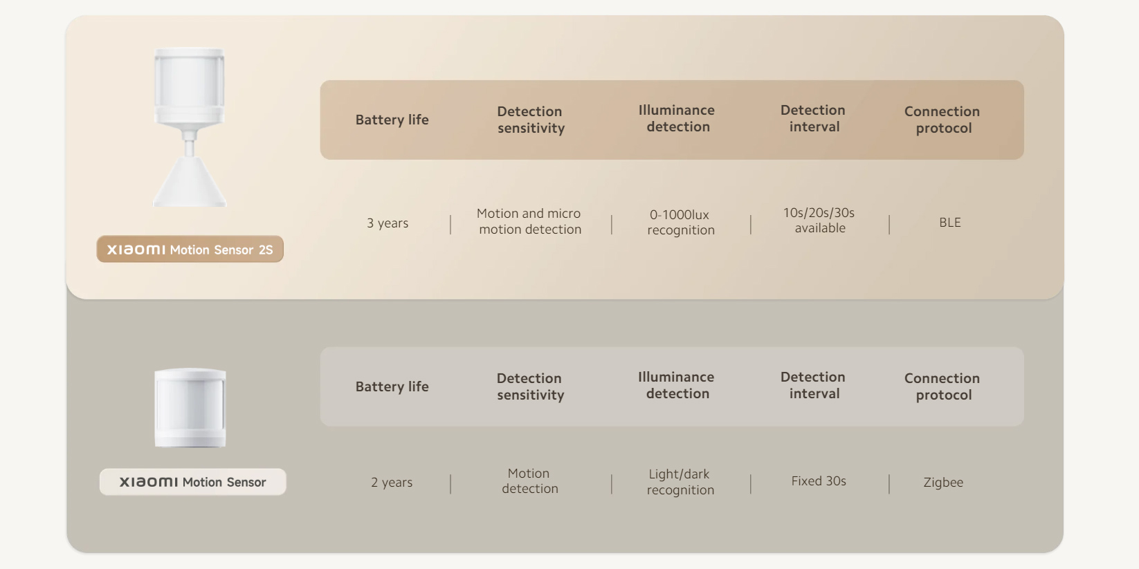 Nový senzor Xiaomi Motion Sensor 2S využívá komunikační protokol Bluetooth 5.0 BLE (Bluetooth Low Energy), zatímco starší verze senzoru používala protokol Zigbee. Bluetooth 5.0 BLE poskytuje několik výhod, včetně vyšší přenosové rychlosti, delšího dosahu a nižší spotřeby energie, což zlepšuje celkovou účinnost a výkon.