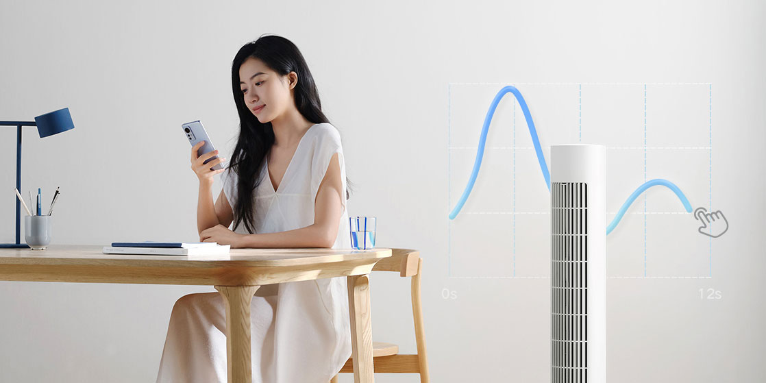 Díky úhlu ventilace 150° pokryje i větší místnosti, přičemž dosahuje na vzdálenost až 10 metrů, takže si užijete svěží vánek, ať už sedíte na gauči, ležíte na podlaze nebo pořádáte rodinnou večeři. A pokud vám výchozí nastavení nestačí, můžete si prostřednictvím aplikace Xiaomi Home nastavit jiné úhly proudění vzduchu.