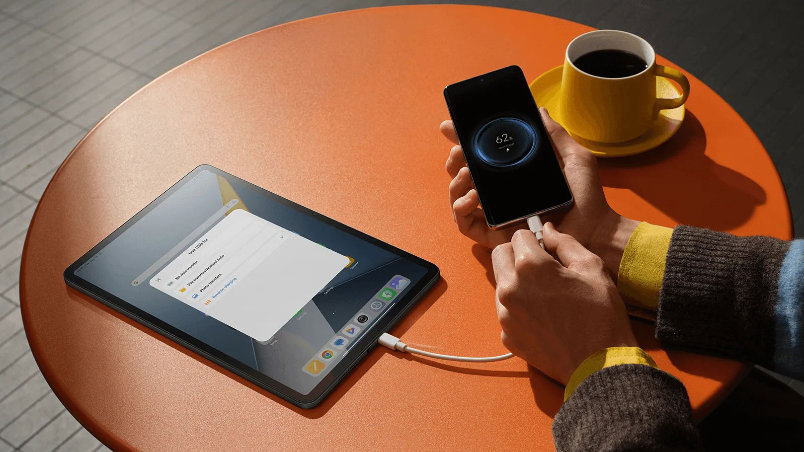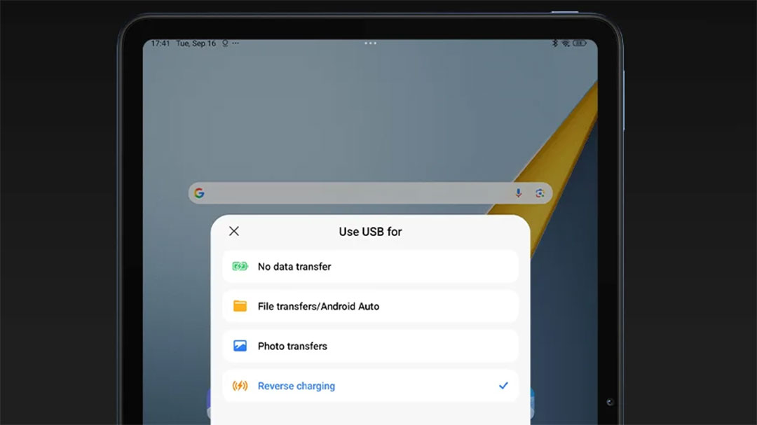 Nabíjení probíhá prostřednictvím konektoru USB-C a tablet podporuje drátové nabíjení výkonem 33 W. Bezdrátové nabíjení k dispozici není. Zajímavou funkcí je podpora reverzního drátového nabíjení výkonem až 27 W, díky čemuž může sloužit jako powerbanka pro dobití telefonu či sluchátek. Důležitou informací je, že nabíjecí adaptér by měl být součástí balení.