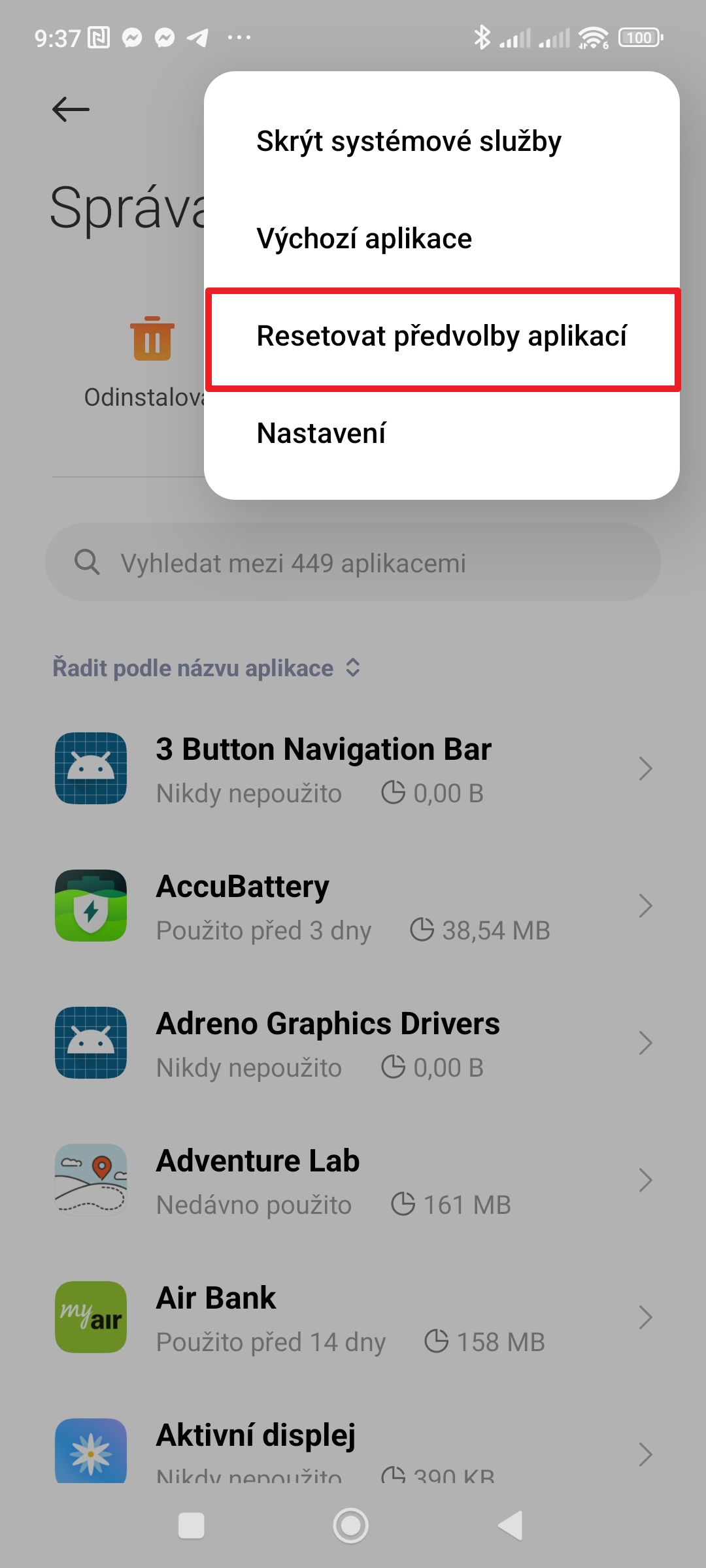 5. Zvolte možnost Resetovat předvolby aplikací.