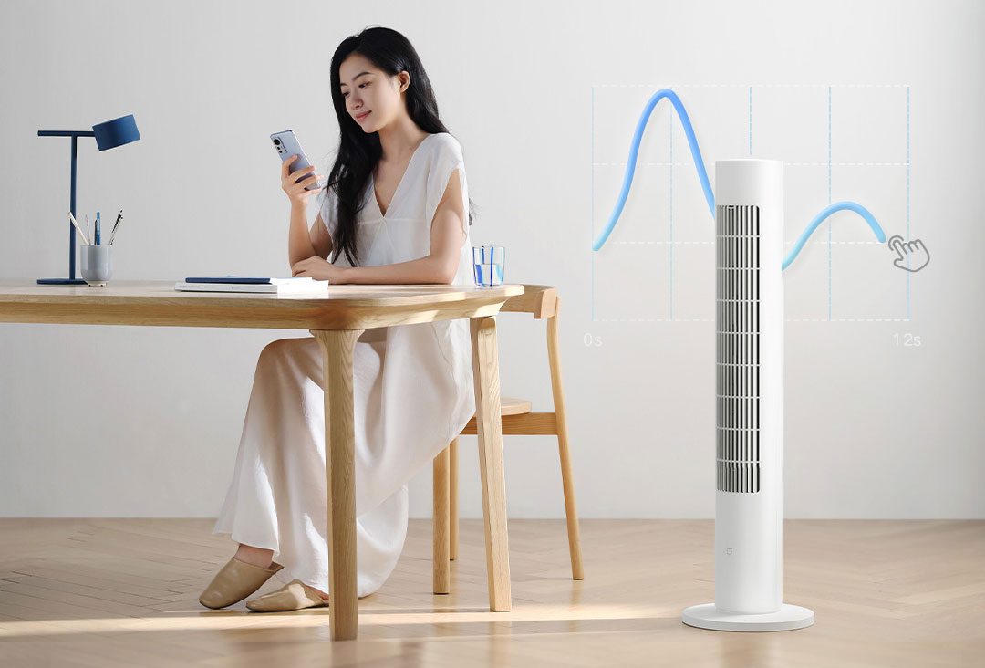 Jedním z rysů sloupového ventilátoru Xiaomi Mijia Smart DC Inverter Tower Fan 2 je zajištění rotace vzduchu v podobě měkkého, jemného a přirozeně působícího větru. Za jednu hodinu dokáže zpracovat až 470 metrů krychlových vzduchu, takže se hodí i do větších místností. Z výdechu, vysokého 60 centimetrů, proudí vzduch v úhlu 150 stupňů na vzdálenost až deseti metrů.