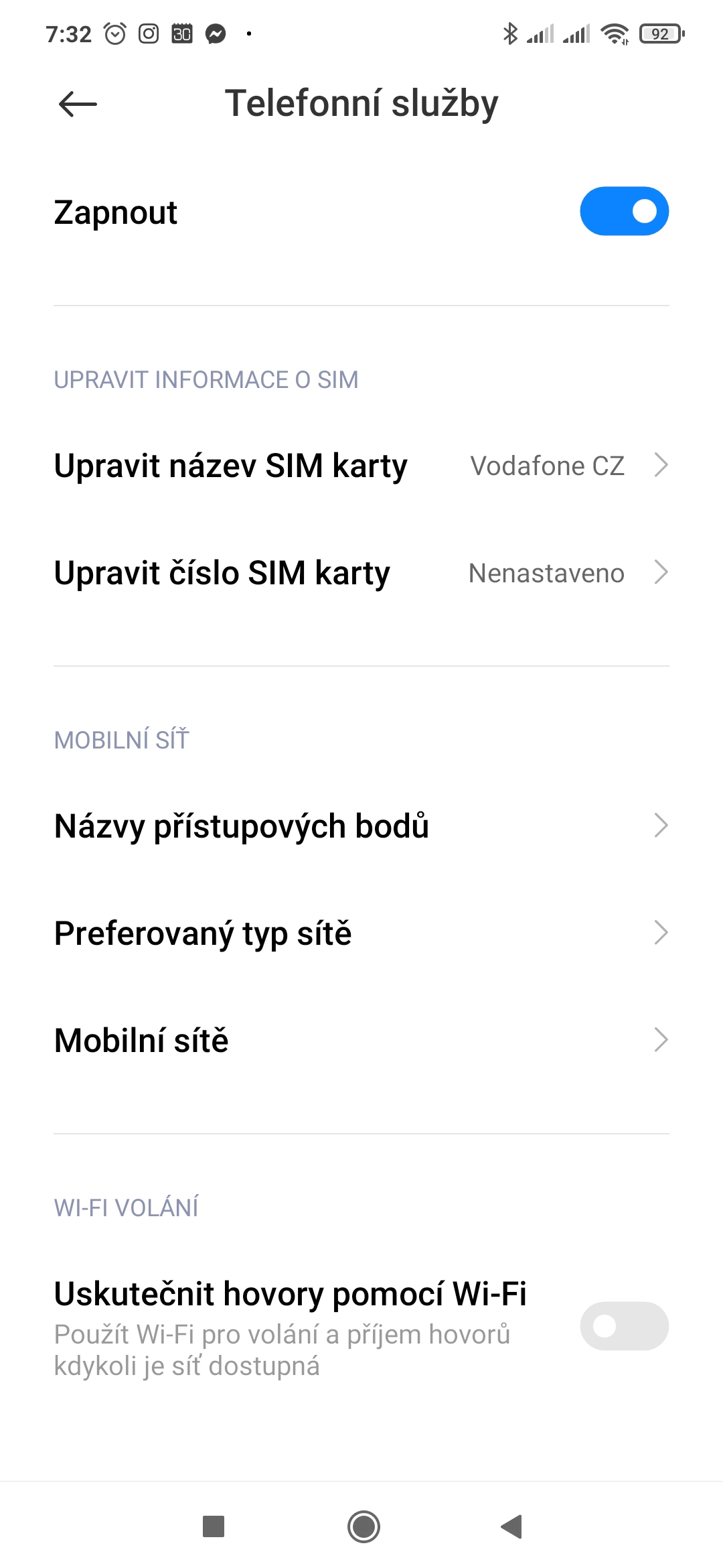 V nastavení SIM karet pak lze povolit/zakázat uskutečňování hovorů pomocí Wi-Fi (tzv. VoWi-Fi), včetně možnosti zvolit si preferovaný způsob (mobilní síť, nebo Wi-Fi). Zde je však nutné upozornit, že tato funkce je u jednotlivých operátorů k dispozici jen na vybraných telefonech,