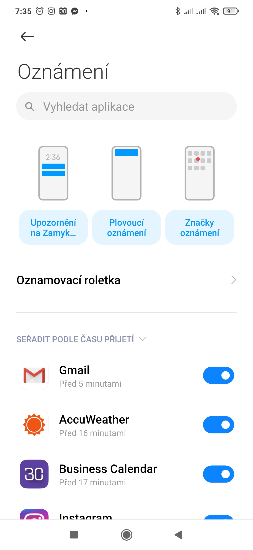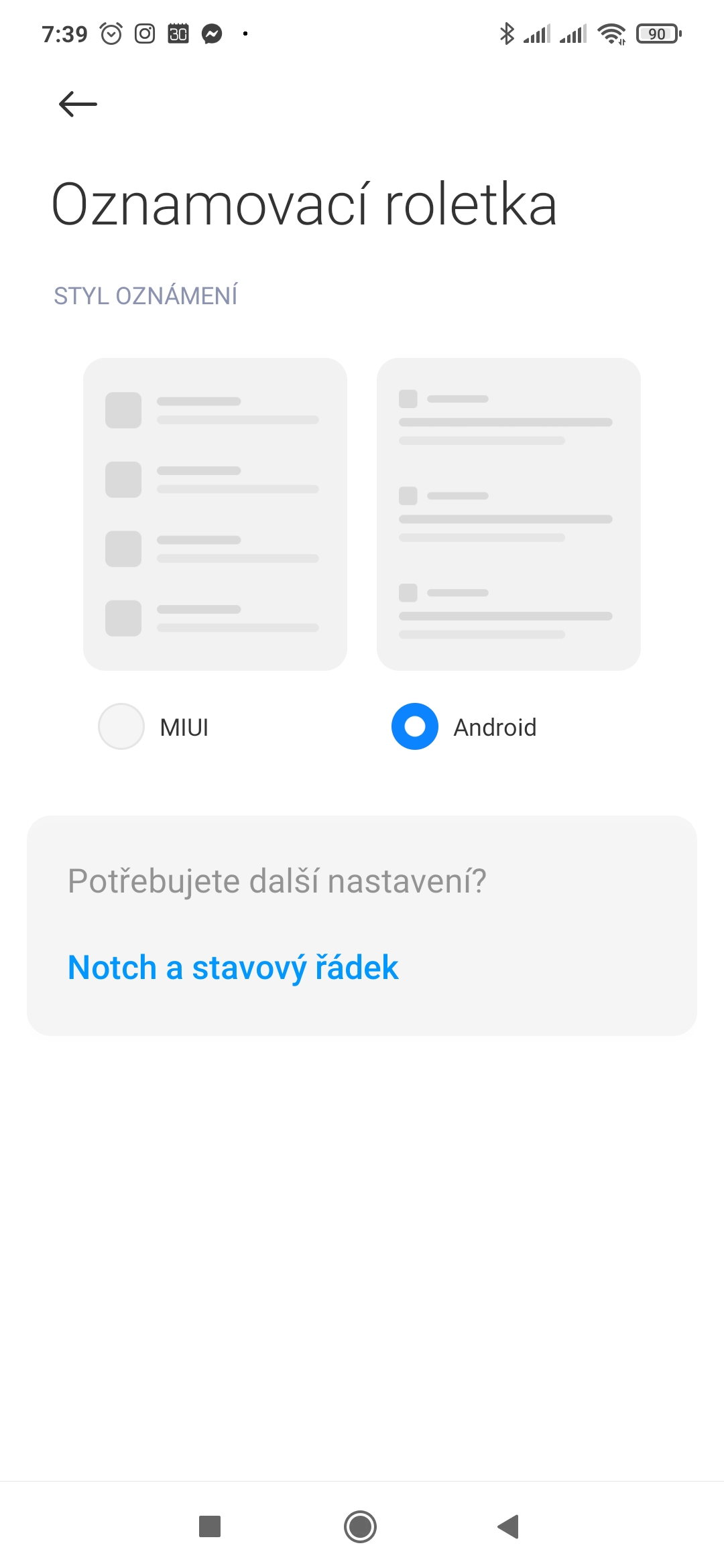 V sekci Oznamovací roletka si můžete zvolit styl zobrazování notifikací. Na výběr je ze dvou možností: MIUI, nebo Android. Rozdíly mezi nimi jsou nejen kosmetického rázu, ale i z hlediska funkčnosti. Nám připadá šikovnější provedení z Androidu.