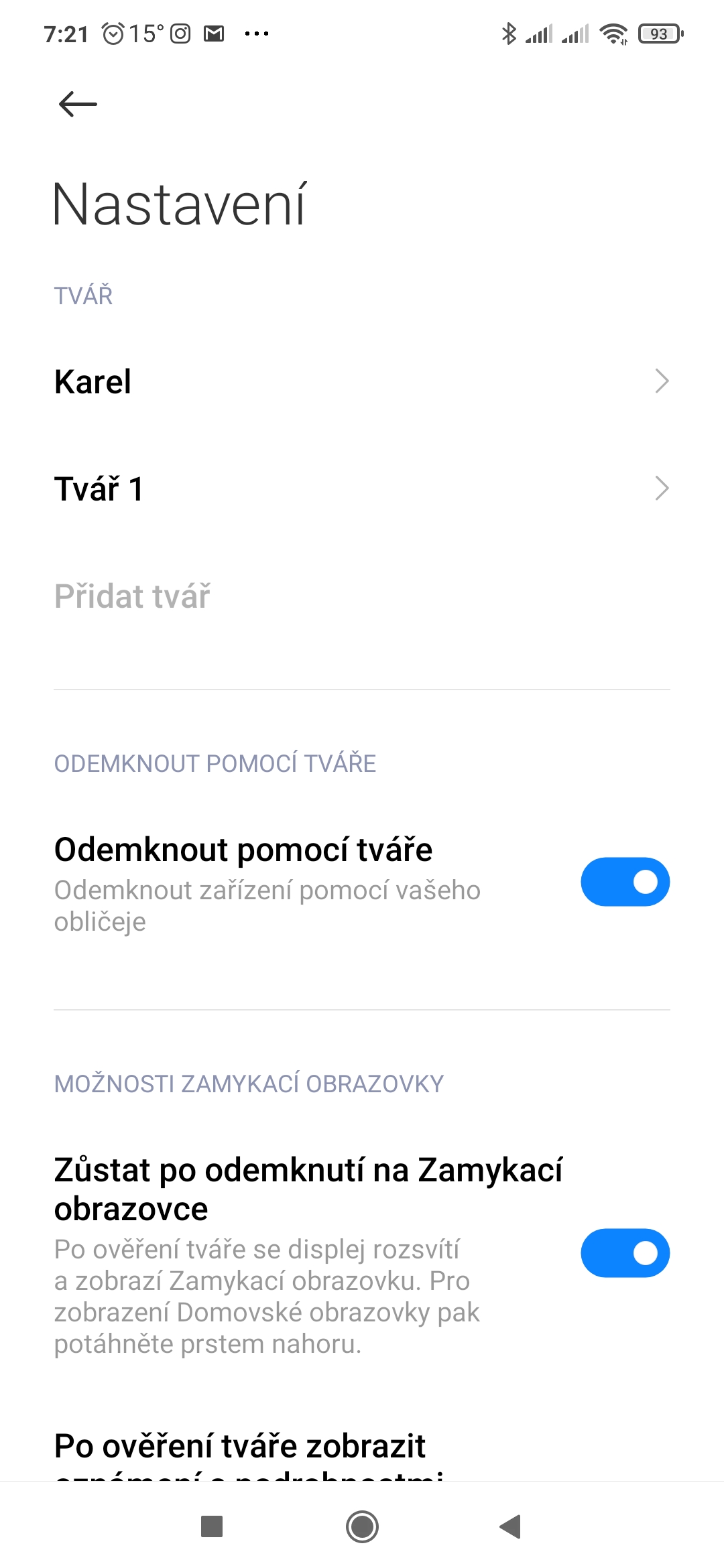 Co se týká toho odemykání obličejem – je možné, že je to na telefonech Poco jinak, byť se mi to nezdá moc pravděpodobné, protože ty úpravy ROMky nejsou zase tak zásadní a nemyslím, že by šly až do této hloubky. Konkrétně toto by mělo být v Nastavení-Heslo a zabezpečení-Odemknutí pomocí tváře. Přepínače Zůstat po odemknutí na Zamykací obrazovce, Povolit Odemknutí pomocí tváře při rozsvícení obrazovky a další.