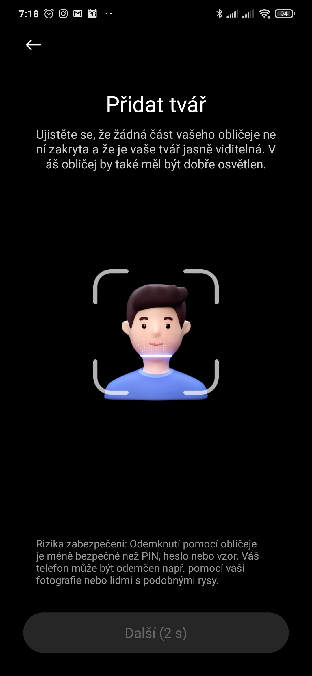 Například u odemykání obličejem mi chybí toto: