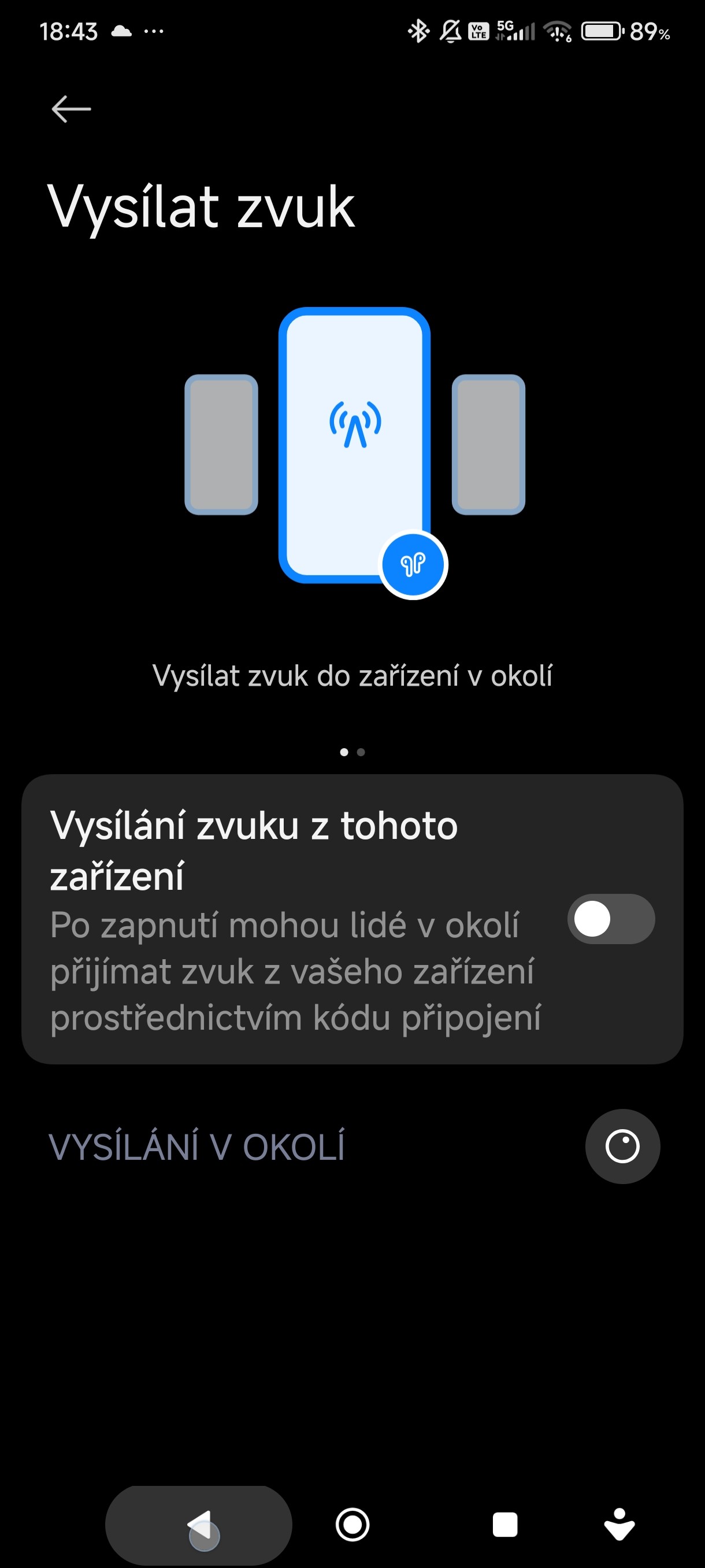 Nastavení -> Bluetooth -> Další nastavení -> Vysílat zvuk.