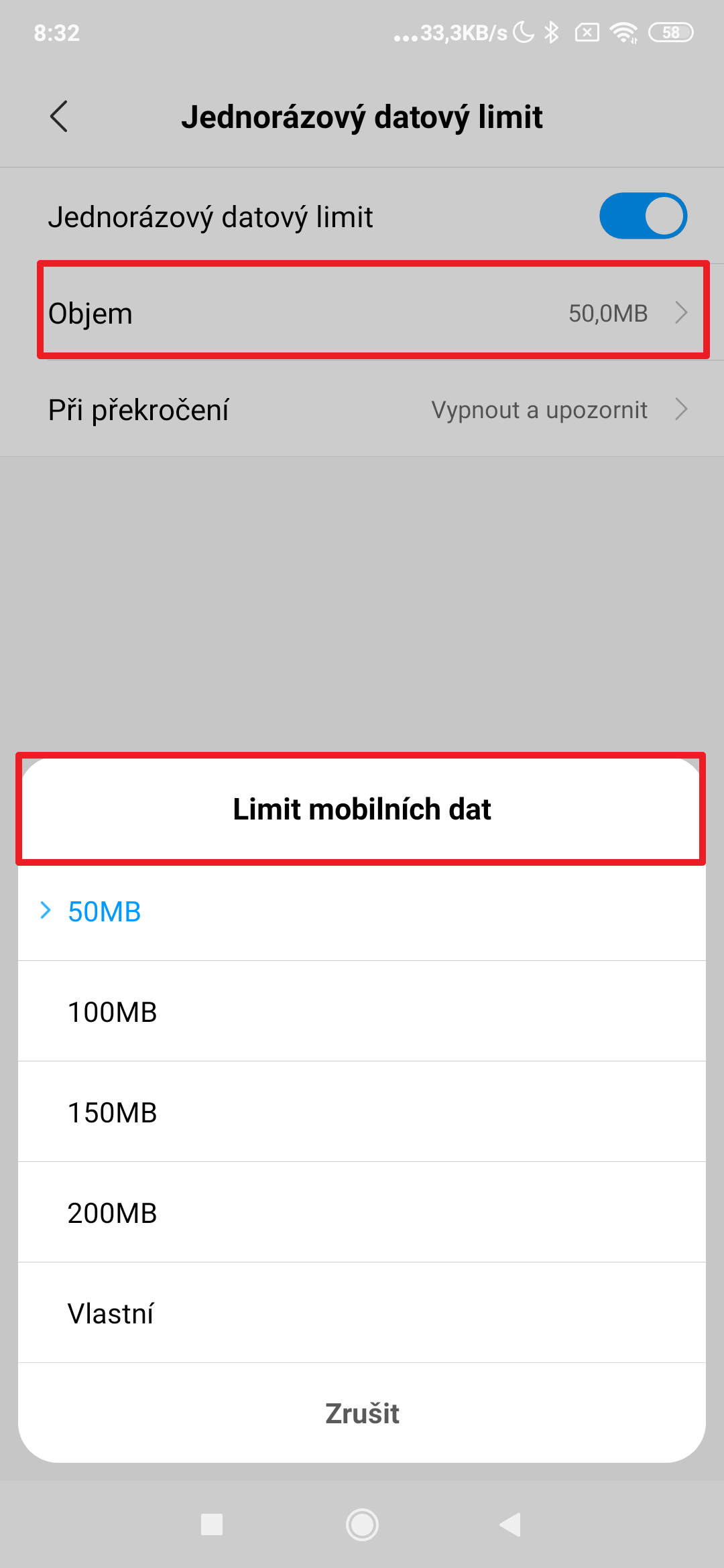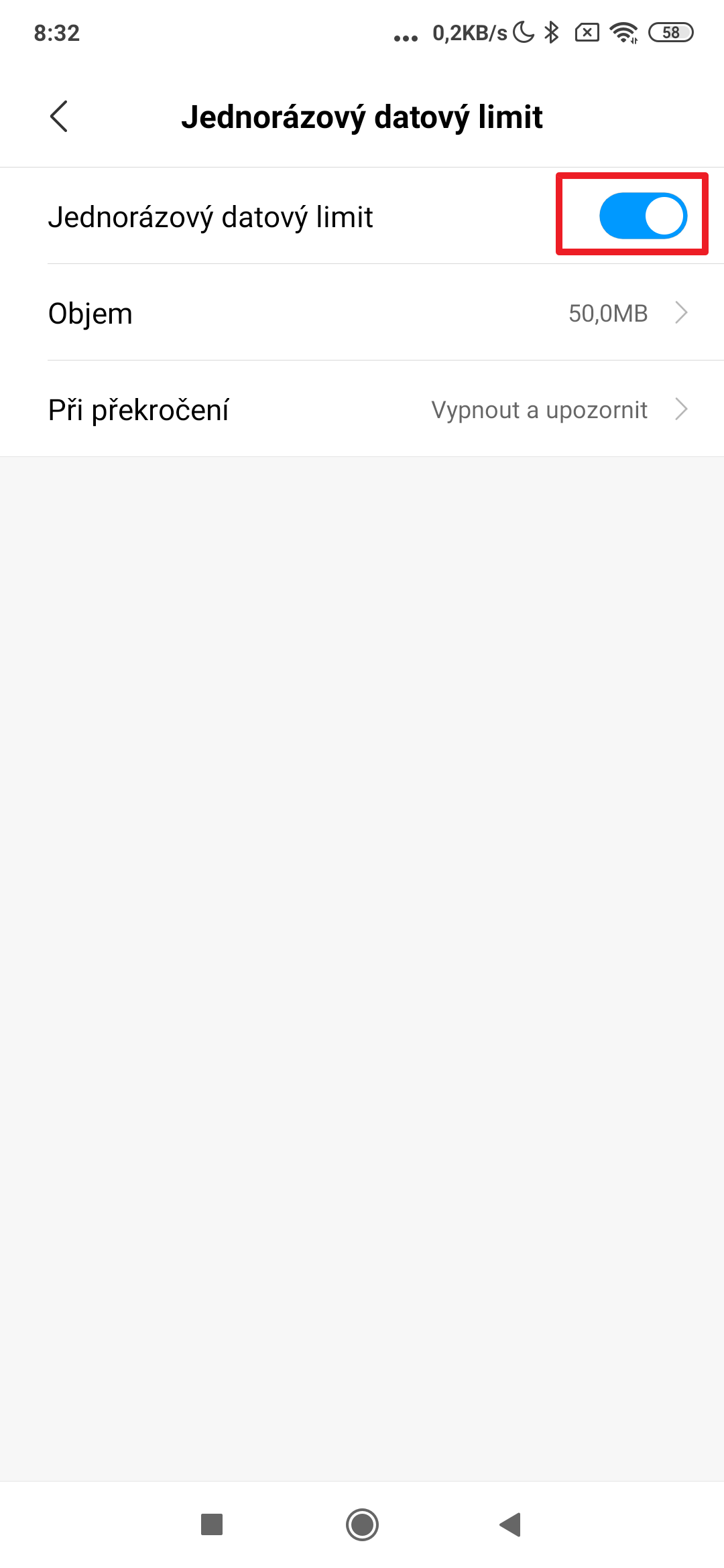 U mobilů ostatních značek chybí Jednorázový limit dat, takže jsem nenašel rozumné řešení.