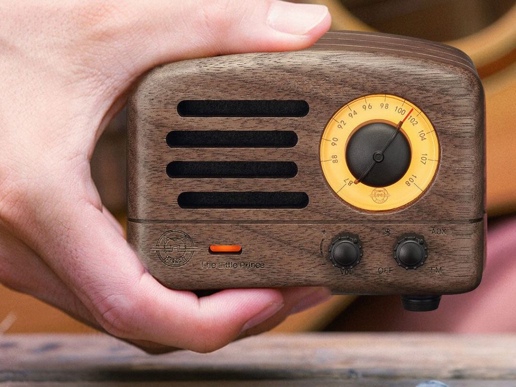Dnešní přehled začneme Bluetooth reproduktorem s integrovaným FM rádiem. Zařízení zaujme hned na první pohled svým retro vzhledem s analogovými ovládacími prvky stříbrné barvy.