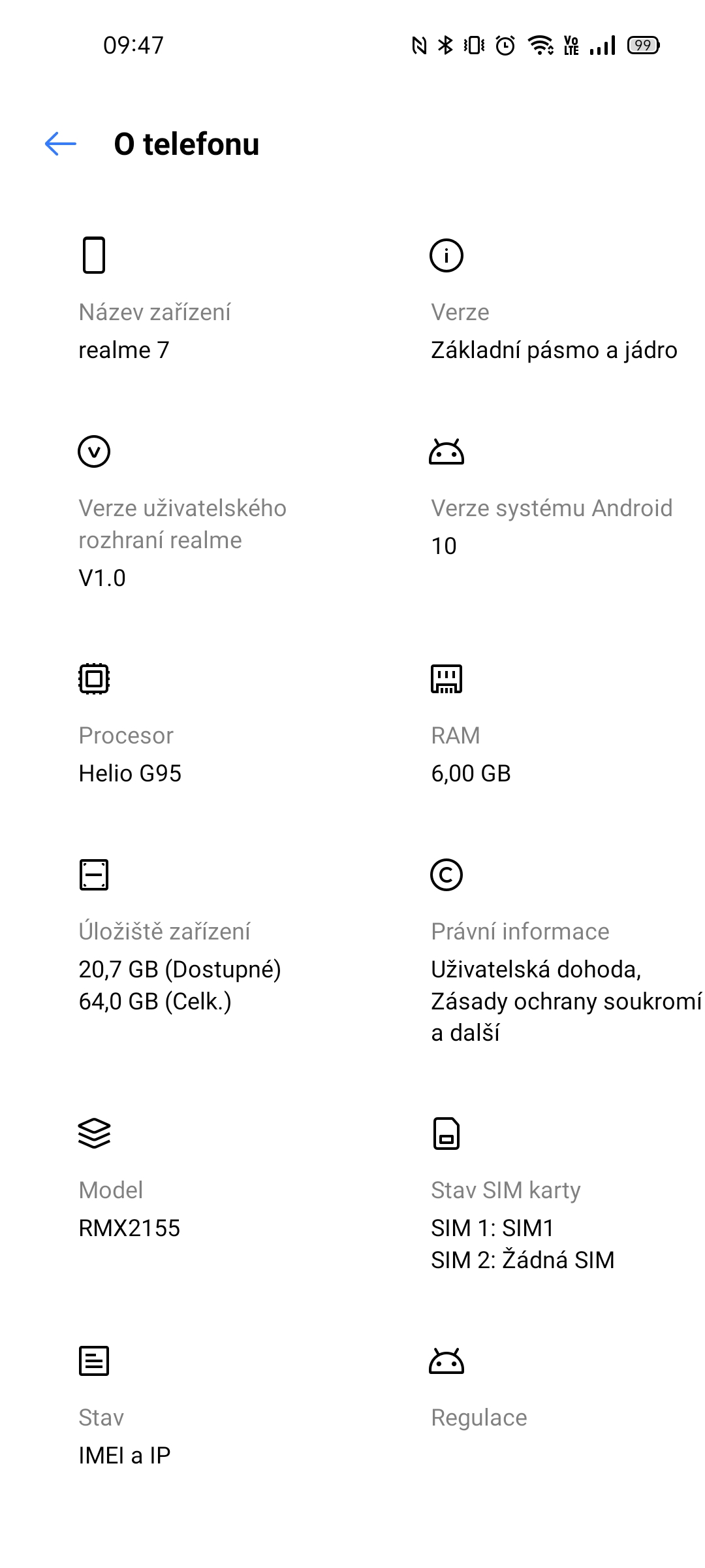Telefon Realme 7 je k dispozici ve třech barevných variantách a to testované modré a bílé. Aktuálně je pak skladem pouze paměťová varianta 6/64 GB.