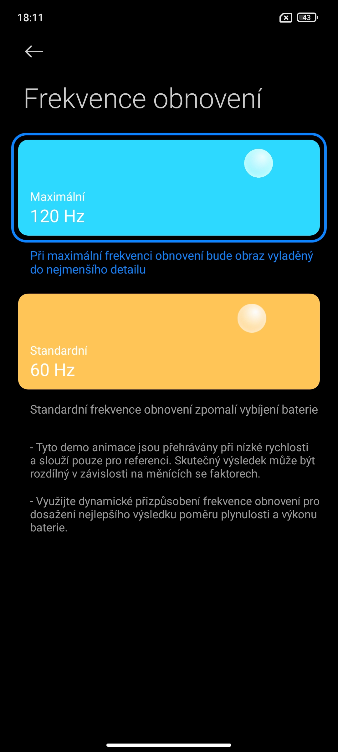 Než se o samotném panelu rozepíšu do detailů, rád bych zmínil, že tento test pro mne znamenal první zkušenost se 120 Hz displejem v telefonu. Ano, vím že dnes nejde o nic extra nového, ale já prostě zatím neměl tu čest. A vážení, já jsem se málem slastí roztekl poté, co jsem 120 Hz režim aktivoval. Opravdu musím uznat, že ta plynulost a flow, nejen ve hrách, ale napříč celým systémem, je něco opravdu velice příjemného a rozhodně znatelného. A pokud by snad někdo chtěl ten rozdíl mezi 60 Hz a 120 Hz panelem bagatelizovat, doporučil bych mu nekoukat na to jen skrze prohlížeč monitoru a jít si to osobně vyzkoušet. Je to příjemné, návykové a nejraději bych se toho už nevzdal.