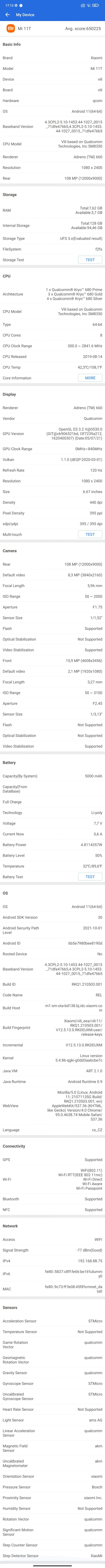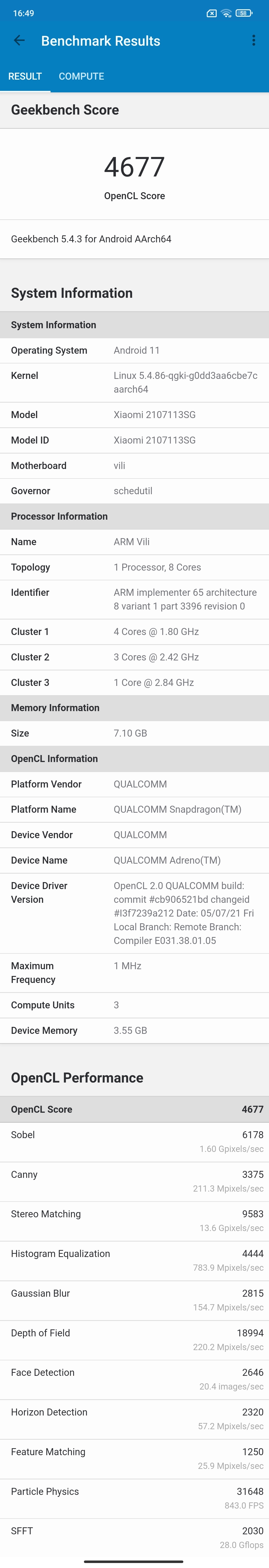 V benchmarku GeekBench získalo Xiaomi 11T Pro skóre 799 bodů v single-core testu a 3464 bodů v multi-core testu.