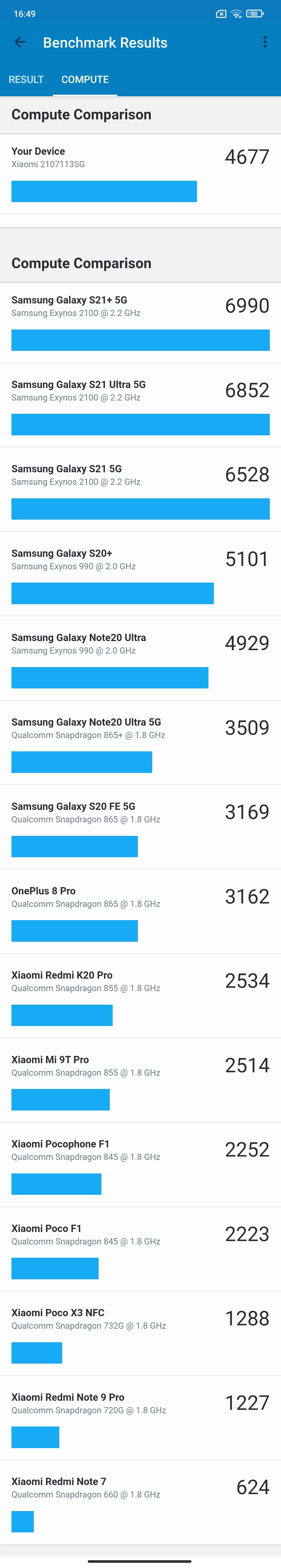 Pokud se podíváme na srovnání zařízení v multi-core testu, tak vidíme, že Xiaomi přeskočilo o téměř 400 bodů nejvyšší příčku benchmarku – Samsung Galaxy S21 Ultra 5G. A to je velmi hezký výsledek. Takže teď už snad mému nadšení z používání rozumí všichni. Telefon zkrátka má výkon, který by mohl rozdávat a číst si u toho noviny.