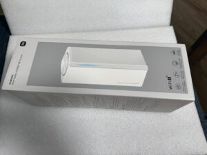 Zařízení dorazilo na recenzi v poměrně velké kartónové krabici. Na jejích bocích je vyobrazeno a jsou vyzdviženy některé jeho vlastnosti. Po rozbalení jsme v krabici, kromě samotného routeru (na recenzi jsme dostali variantu s jedním routerem), našli napájecí adaptér s ??? dlouhým neoddělitelným kabelem bílé barvy.