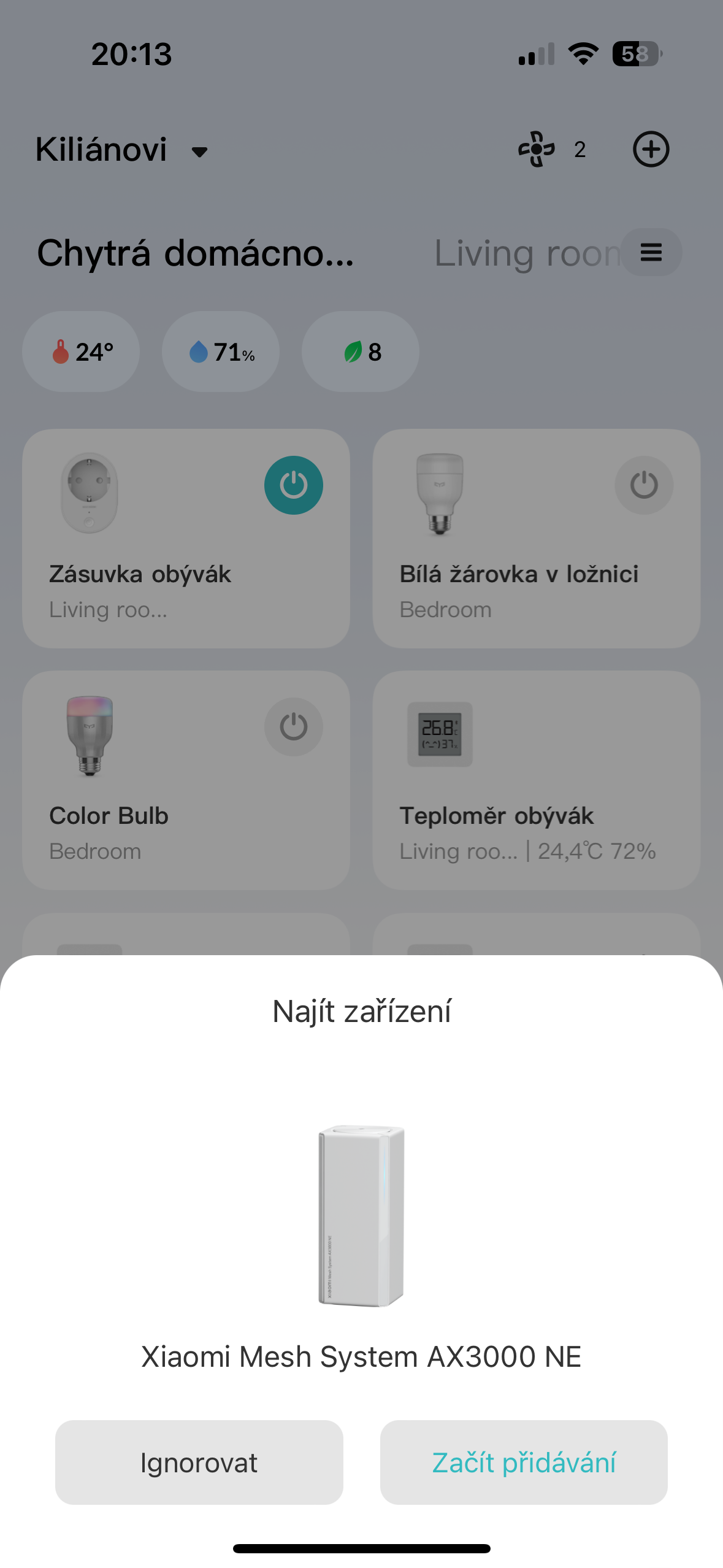 Opakovaně jsme se pokoušeli přidat router do aplikace Mi Home, nicméně nedařilo se nám to. Zkoušeli jsme to jak na telefonu Xiaomi 12, tak na iPhone 15 Pro a výsledek byl pokaždé stejný. Po připojení k Wi-Fi jsme zapnuli aplikaci Mi Home a nechali jsme vyhledat nová zařízení.