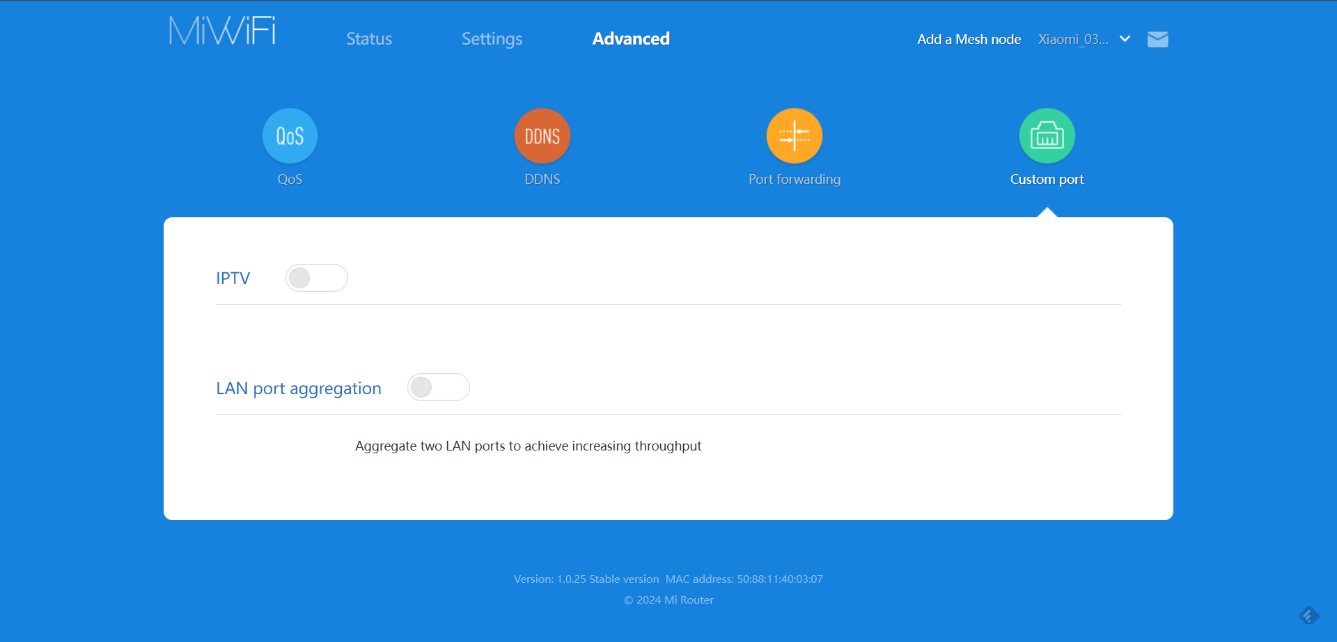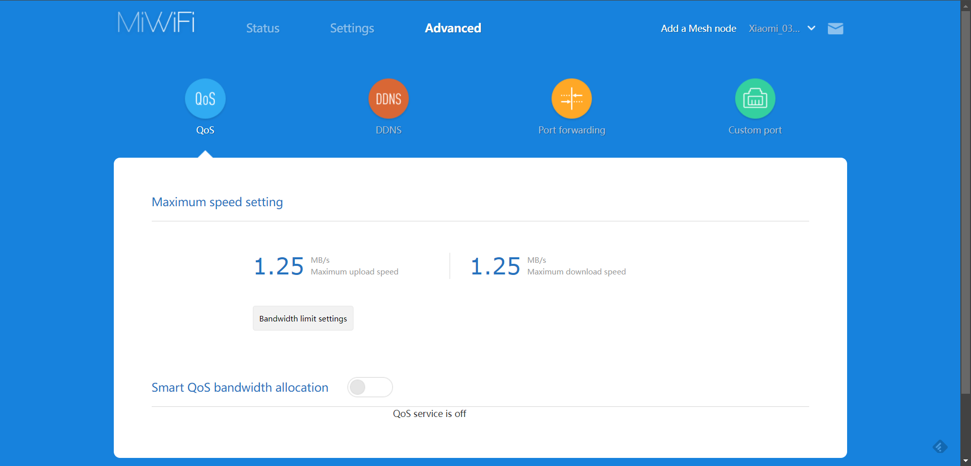 Další možnosti nastavení najdete v sekci Advanced, kde jsou připraveny čtyři položky: QoS, DDNS, Port forwarding a Custom port. Pojďme si je opět postupně projít.