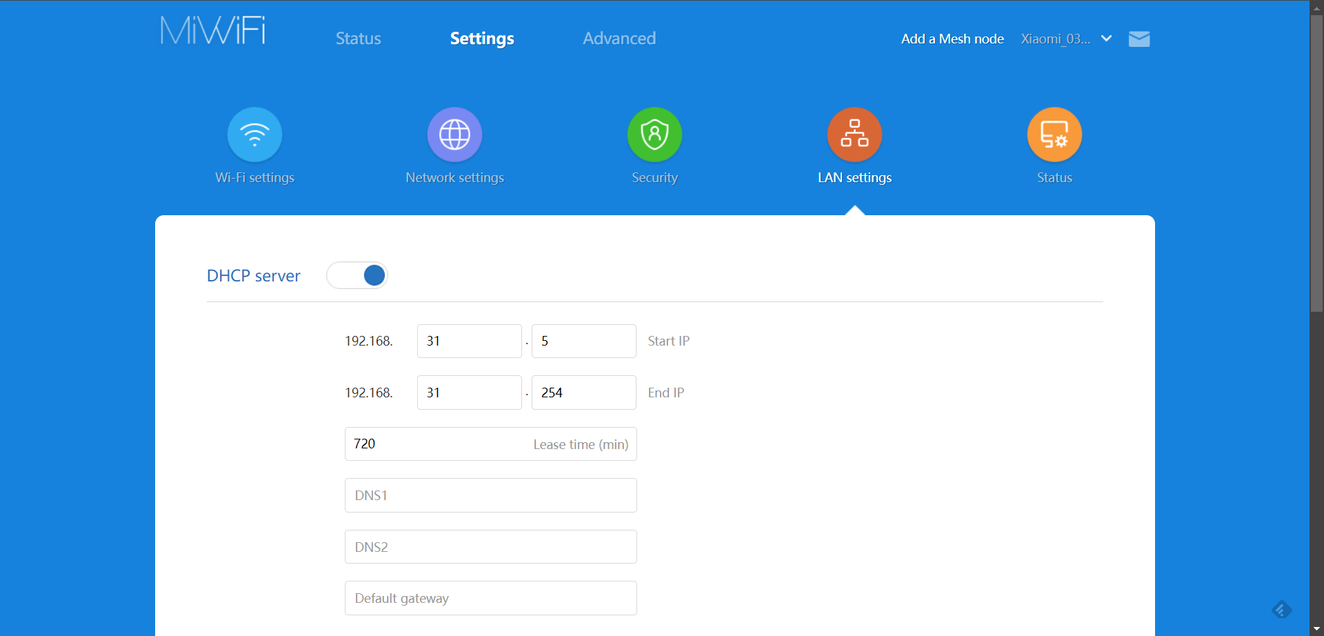 Sekce LAN settings
