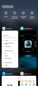 Přítomno je rovněž povedené ovládání gesty. Subjektivně nám však připadá, že gesto pro návrat na domovskou obrazovku (rychlé přejetí od spodního okraje směrem vzhůru) systém detekuje poměrně daleko od spodního okraje displeje. V praxi se nám tak stávalo například že jsme nechtěně „vyskočili“ z nějaké aplikace. Jedná se sice o drobnost, na žádném jiném smartphonu Xiaomi jsme se s tím však nesetkávali (nebo přinejmenším ne zdaleka tak často). Jinak je však optimalizace prvotřídní, vše funguje rychle a plynule, nedochází k žádným zpomalením či pádům aplikací a 144Hz displej plynulost celého prostředí ještě podtrhuje.