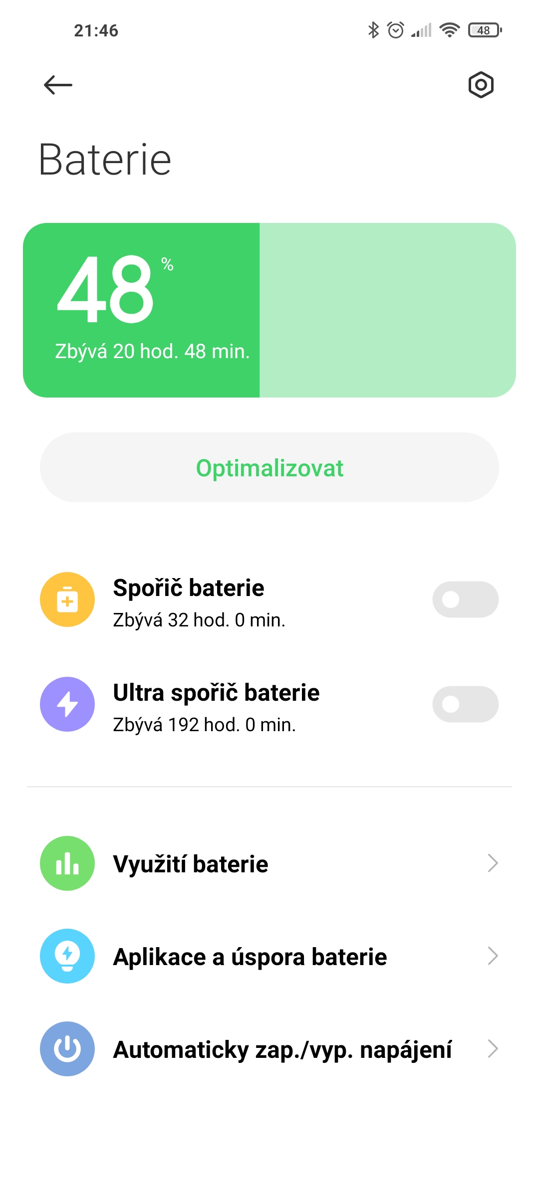 Přítomno je rovněž povedené ovládání gesty. Subjektivně nám však připadá, že gesto pro návrat na domovskou obrazovku (rychlé přejetí od spodního okraje směrem vzhůru) systém detekuje poměrně daleko od spodního okraje displeje. V praxi se nám tak stávalo například že jsme nechtěně „vyskočili“ z nějaké aplikace. Jedná se sice o drobnost, na žádném jiném smartphonu Xiaomi jsme se s tím však nesetkávali (nebo přinejmenším ne zdaleka tak často). Jinak je však optimalizace prvotřídní, vše funguje rychle a plynule, nedochází k žádným zpomalením či pádům aplikací a 144Hz displej plynulost celého prostředí ještě podtrhuje.