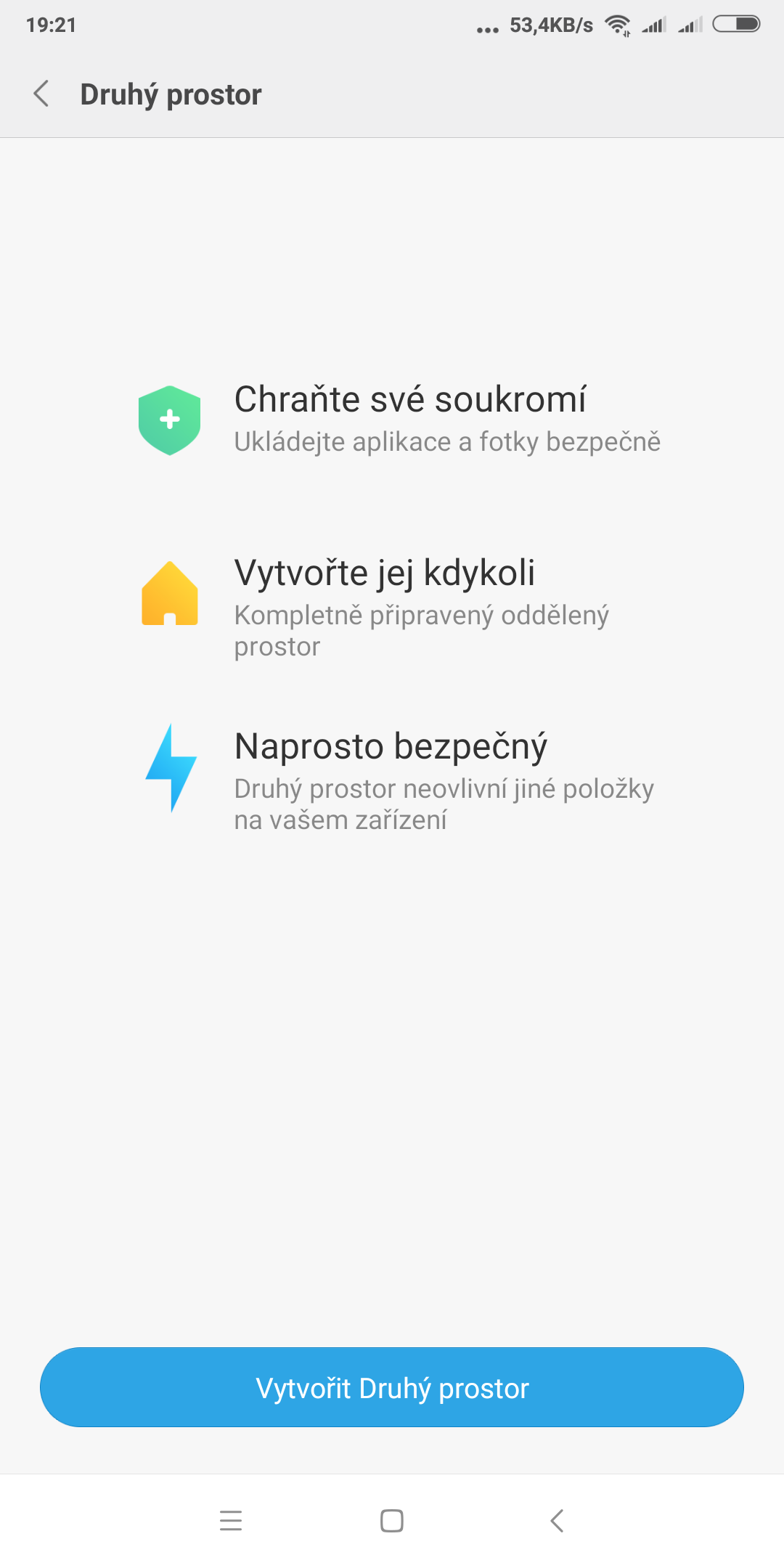 Kromě volitelné podpory ovládání gest přináší MIUI také řadu dalších vylepšení v podobě druhého prostoru, dovolující vytvoření zabezpečeného paralelního profilu v rámci jednoho účtu, či duálních aplikací, které oceníte například v situaci, kdy v programech Messenger, Facebook, WhatsApp a dalších používáte dva různé účty. Zajímavá je také možnost zamknout vybrané programy před neoprávněným přístupem.
