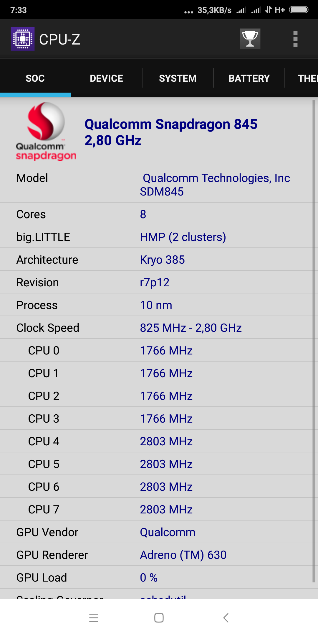 Jako procesor je v telefonu osmijádrový čip Qualcomm Snapdragon 845, což je aktuálně to nejlepší, co můžete v telefonu mít. Čtyři jádra Kryo 385 Gold mohou běžet na rychlosti až 2,8 GHz, další čtyři Kryo 385 Silver pak mají maximální frekvenci 1,8 GHz. Díky tomu procesor nabídne jak špičkový výkon, tak i úspornost při běžném používání. O grafiku se stará akcelerátor Adreno 630, který se nezadýchá ani při nejnáročnějších hrách.