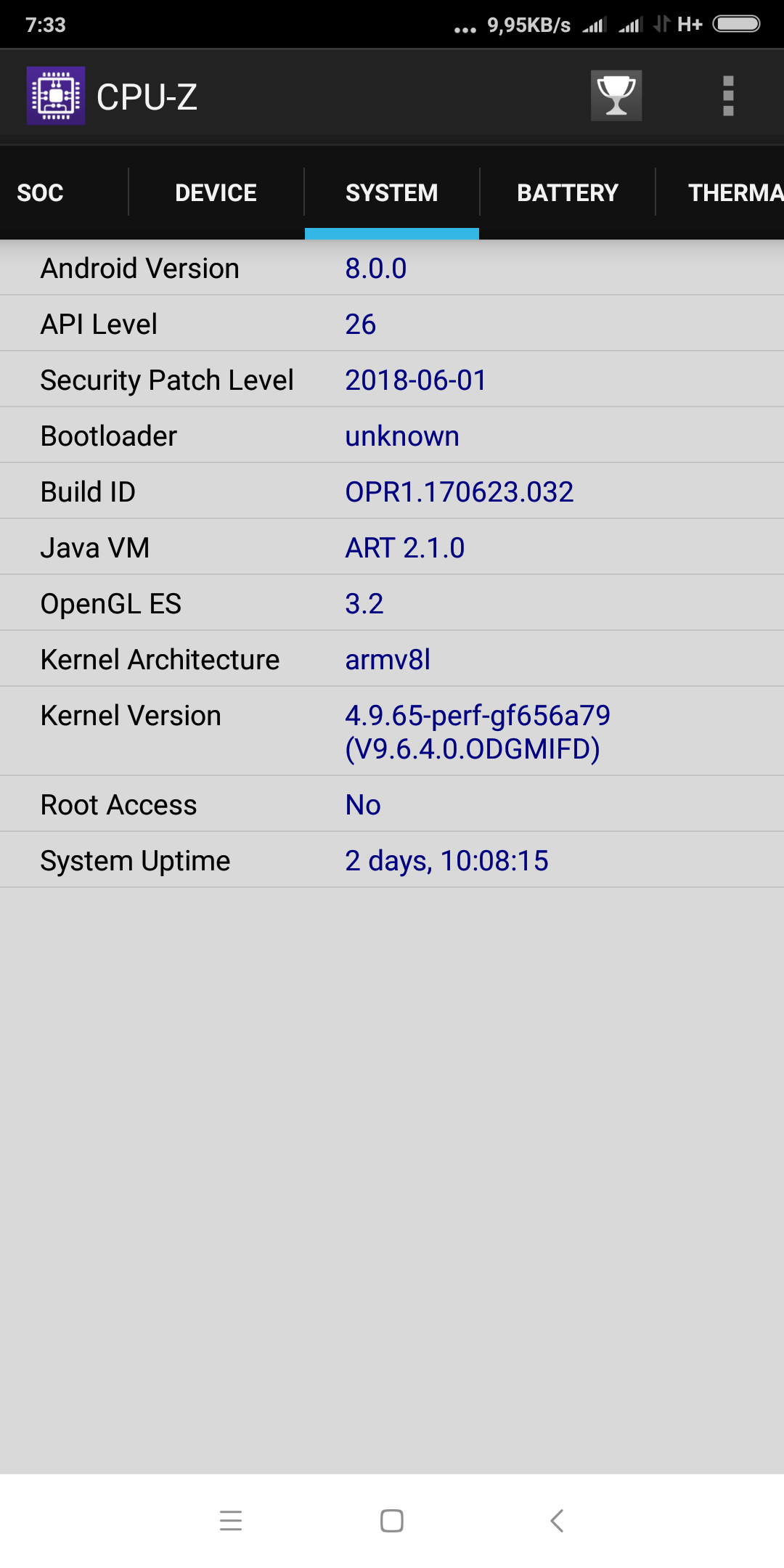 Jako operační systém je na tomto telefonu nainstalován Android 8.0 Oreo v upravené ROM MIUI 9.6.4. Tato ROM je, kromě mnoha dalších vlastností, vybavena celou řadou aplikací, což většině uživatelů Xiaomi vyhovuje, někteří to však mohou vnímat jako mínus.