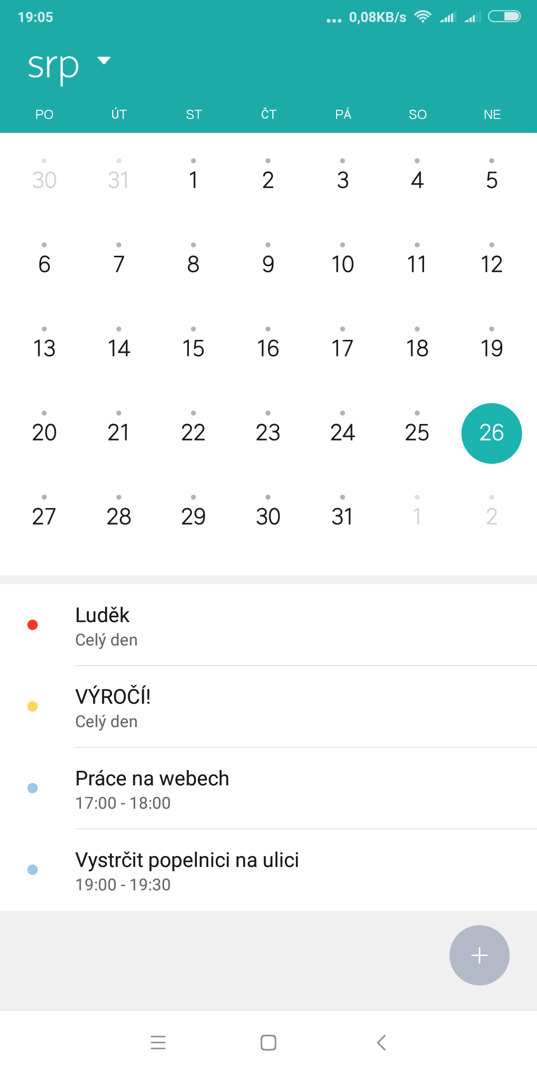 - Kalendář – vlastní kalendářová aplikace, která je schopná pracovat i s Kalendářem Google.