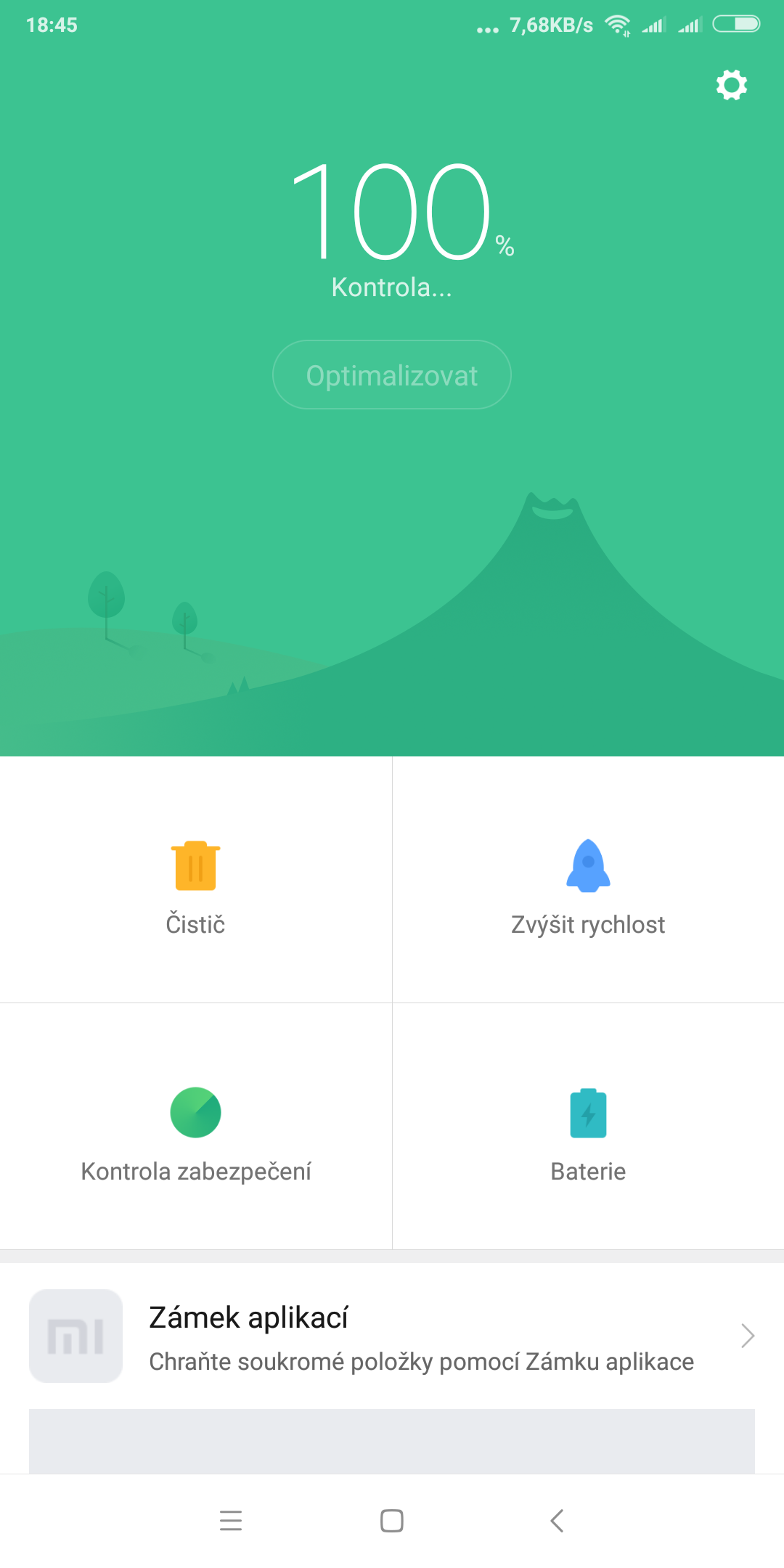 - Optimalizace – jedna ze silných stránek telefonů Xiaomi. Aplikace, která vyčistí telefon od zbytečností, zkontroluje zabezpečení, ukáže informace o spotřebě baterie a má řadu dalších užitečných funkcí.