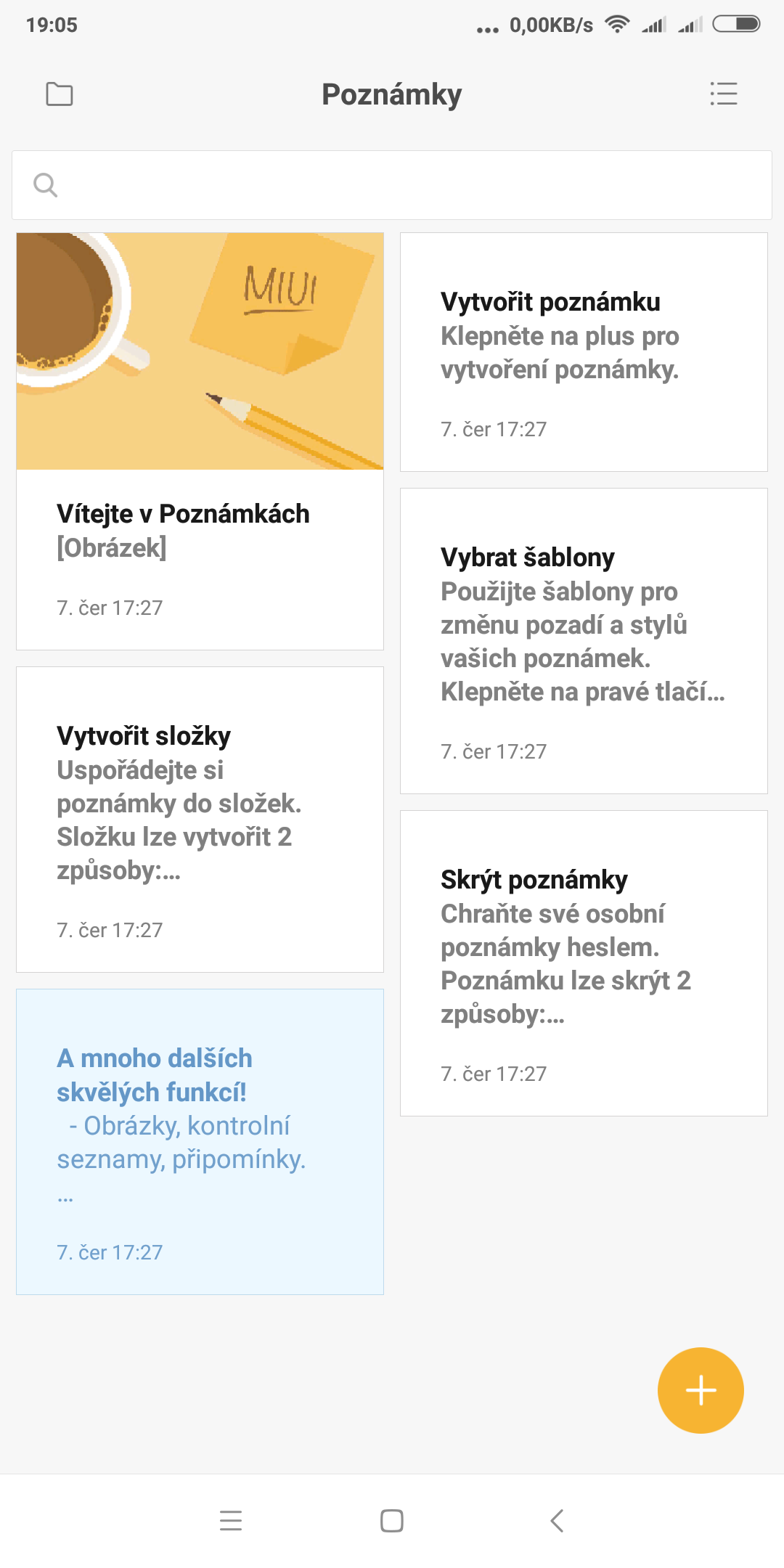 - Poznámky – jednoduchý poznámkový systém, do určité míry připomínající Google Keep. Dovoluje vytvářet textové i obrázkové poznámky, odškrtávací seznamy a podobně.