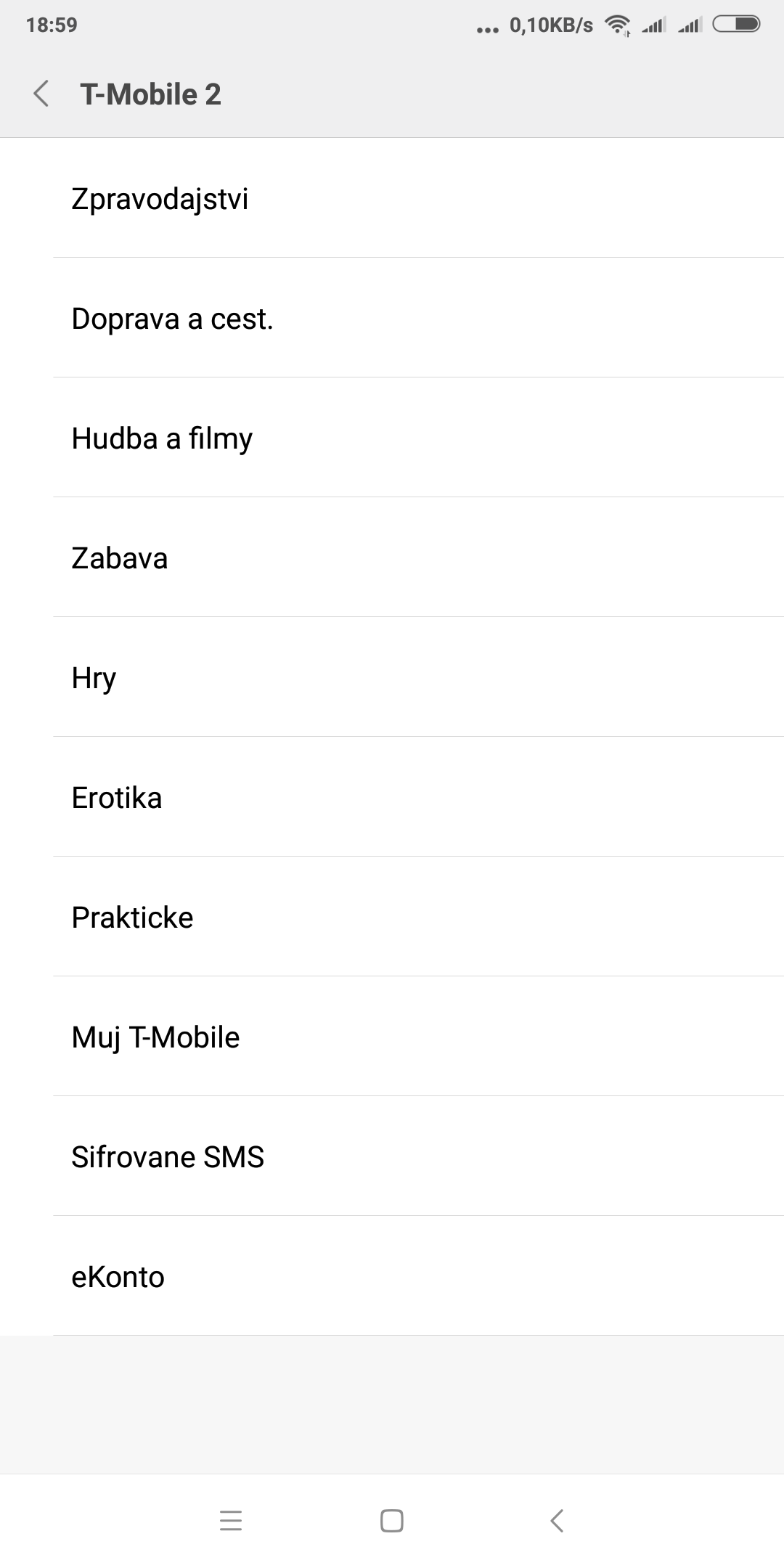 - Hudba – hudební přehrávač pro přehrávání zvukových souborů, uložených v zařízení.