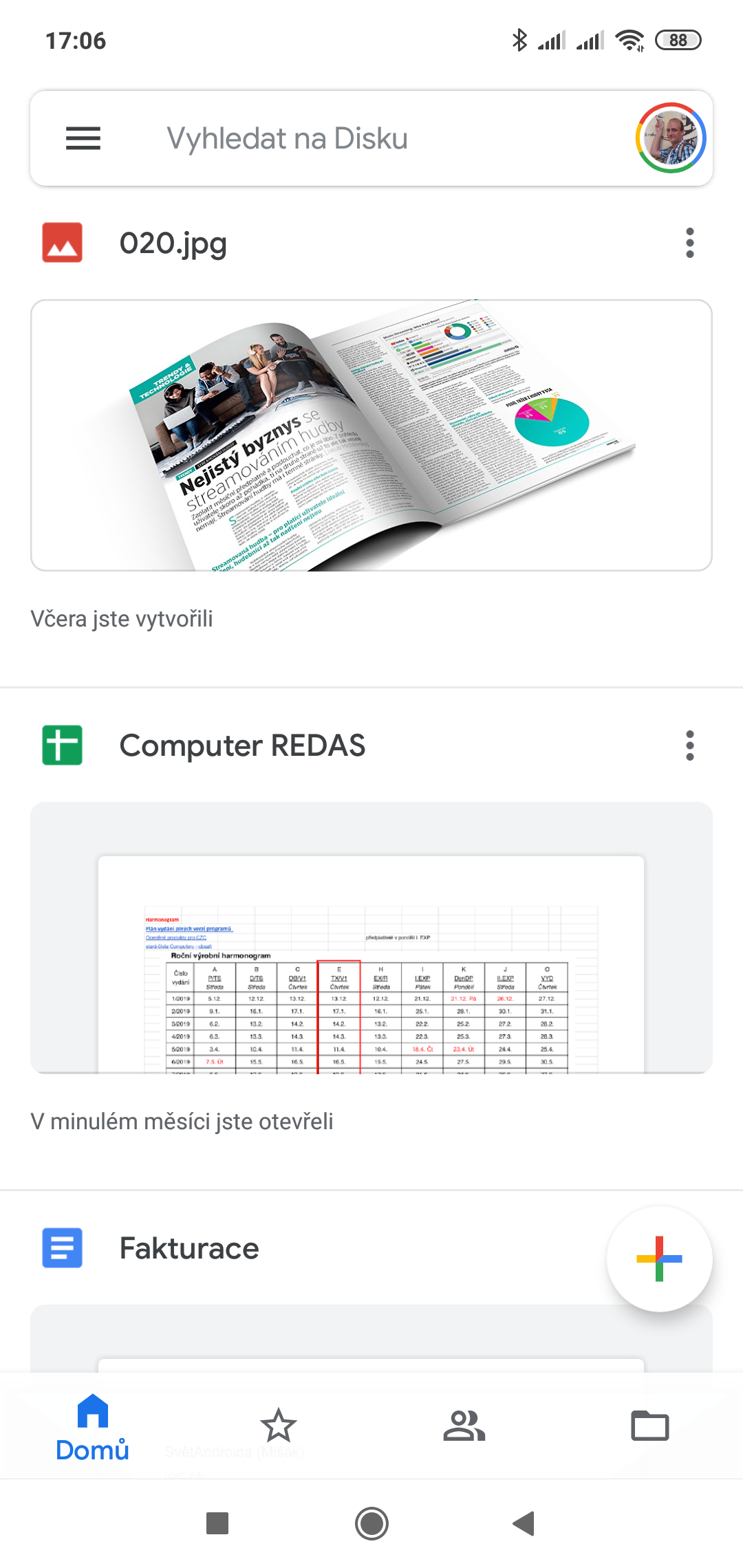 - Disk – cloudové úložiště Googlu poskytuje v základu poměrně slušný prostor 15 GB, plus neomezené místo na fotky. Aplikace zvládá práci s texty, tabulkami i prezentacemi.