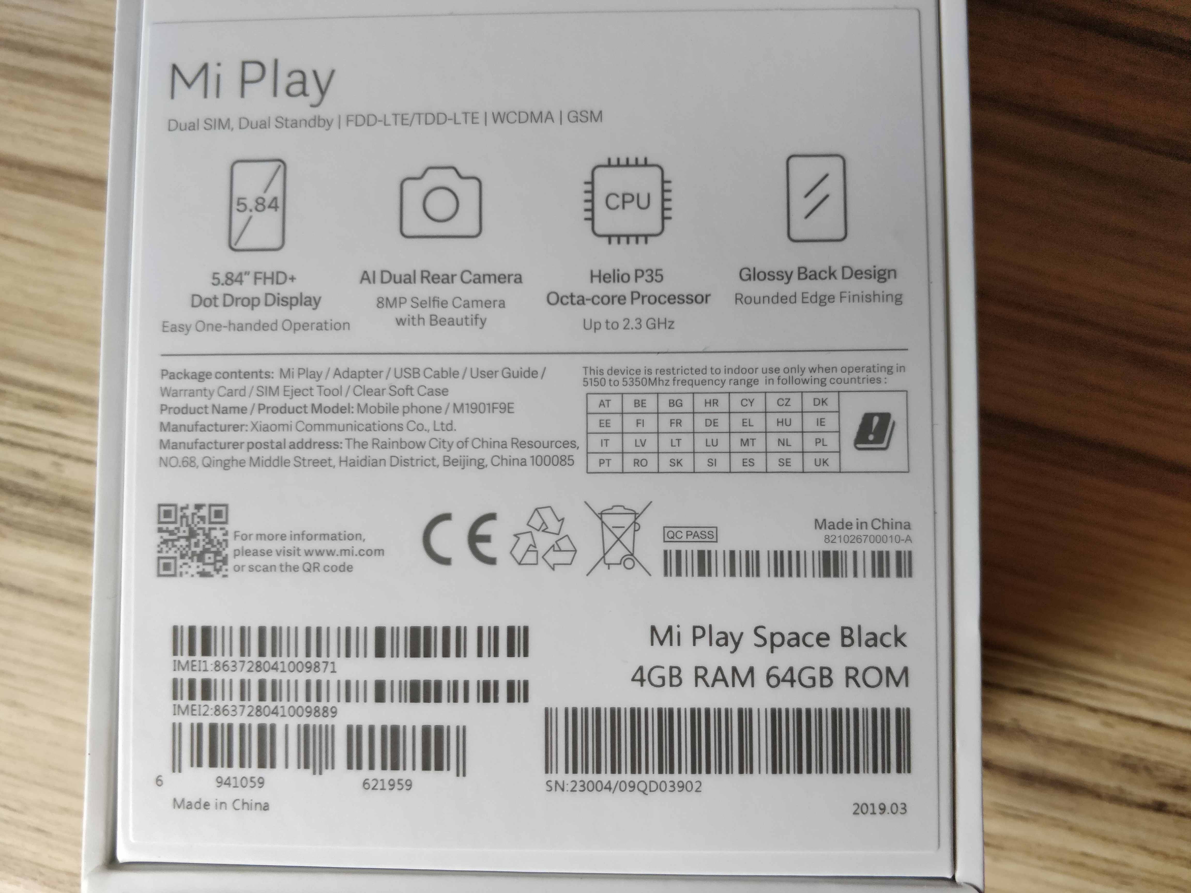 Z hlediska velikosti se Mi Play trefuje přesně mezi Redmi 6 a Redmi Note 6 Pro – úhlopříčka je v tomto případě 5,84″. I na relativně menší plochu se podařilo vměstnat 1080 × 2280 obrazových bodů, což znamená velmi pěknou jemnost 432 ppi. Deklarovaný kontrastní poměr je víceméně obvyklých 1500:1.