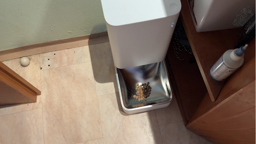 Granule by měly být buď kulaté nebo hranaté a jejich průměr by měl být 5 – 12 mm. Jakékoli jiné granule, tedy granule jiných tvarů či jiného průměru mohou způsobovat v lepším případě zasekávání zařízení, v horším jeho poškození. Nádoba zásobníku pojme až 1,8 kg granulí, což je množství, které by kočce či menšímu psovi mělo pohodlně vyjít na 15 – 20 dní pravidelného dávkování.