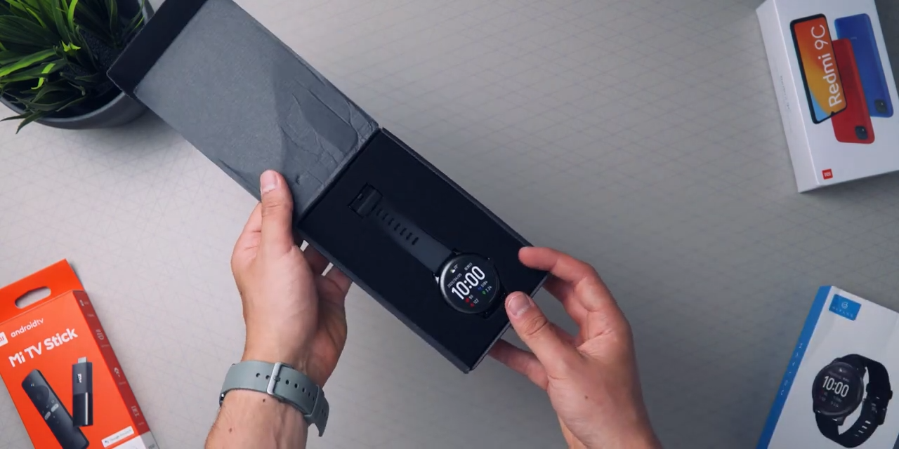 Hodinky Xiaomi Haylou Solar se prodávají v papírové krabičce, ve které jsou uložené ve speciálně tvarovaném lůžku. Jejich sklo pokrývá potištěná transparentní transportní fólie. Z horní strany je pochopitelně ciferník/obrazovka, při pohledu zespodu pak spatříte snímač tepové frekvence a nabíjecí magnetický konektor. Na pravé straně je jediné mechanické tlačítko.