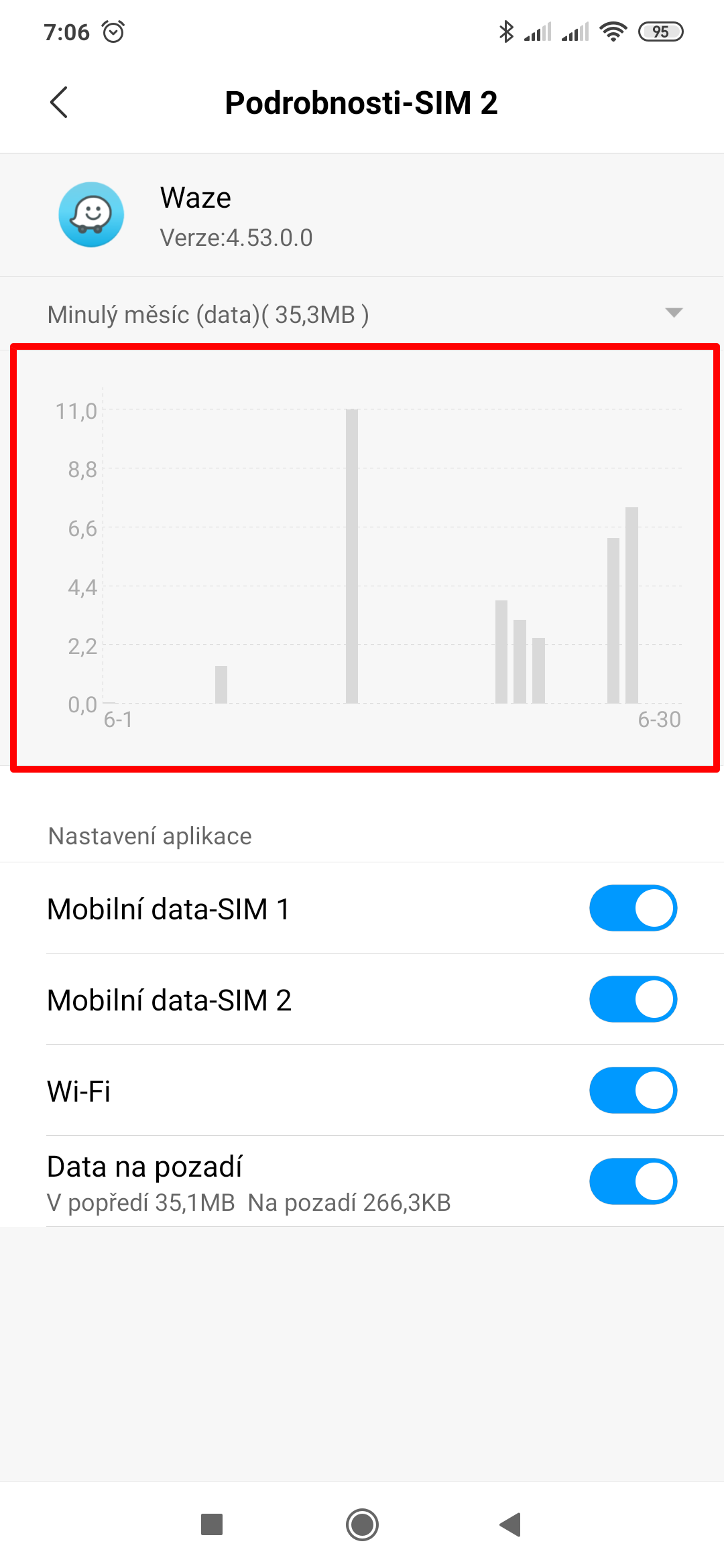 Pokud máte omezený datový tarif, určitě se vám bude hodit informace o tom, kolik která aplikace přenesla dat. I tento údaj MIUI poskytuje, a to v relativně podrobných a přehledných grafech.