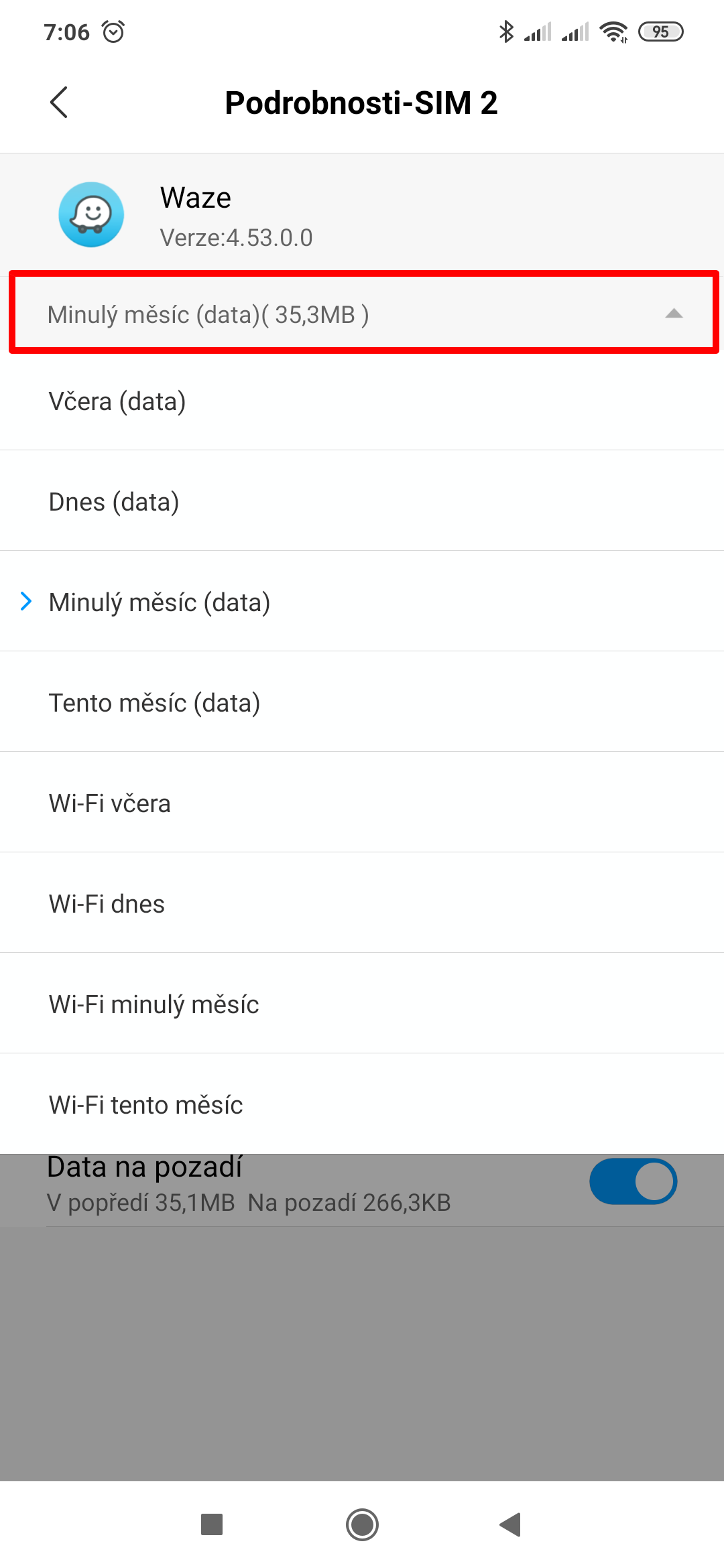 - Pomocí přepínačů v dolní části okna můžete zakázat aplikaci přístup přes jednotlivé SIM karty, přes Wi-Fi, případně v situaci, kdy daná aplikace běží na pozadí.
