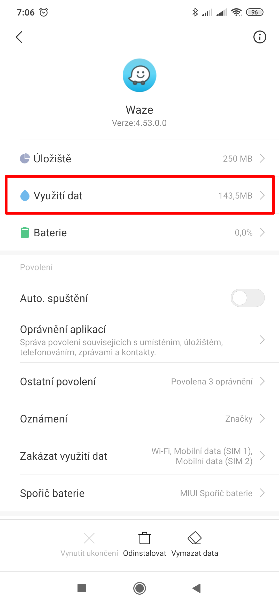 Jestliže vám některá aplikace přenáší příliš velké objemy dat, můžete jí přístup k internetu omezit nebo třeba úplně zakázat. Správa nainstalovaných aplikací v nadstavbě MIUI nabízí v tomto směru nadstandardní možnosti.