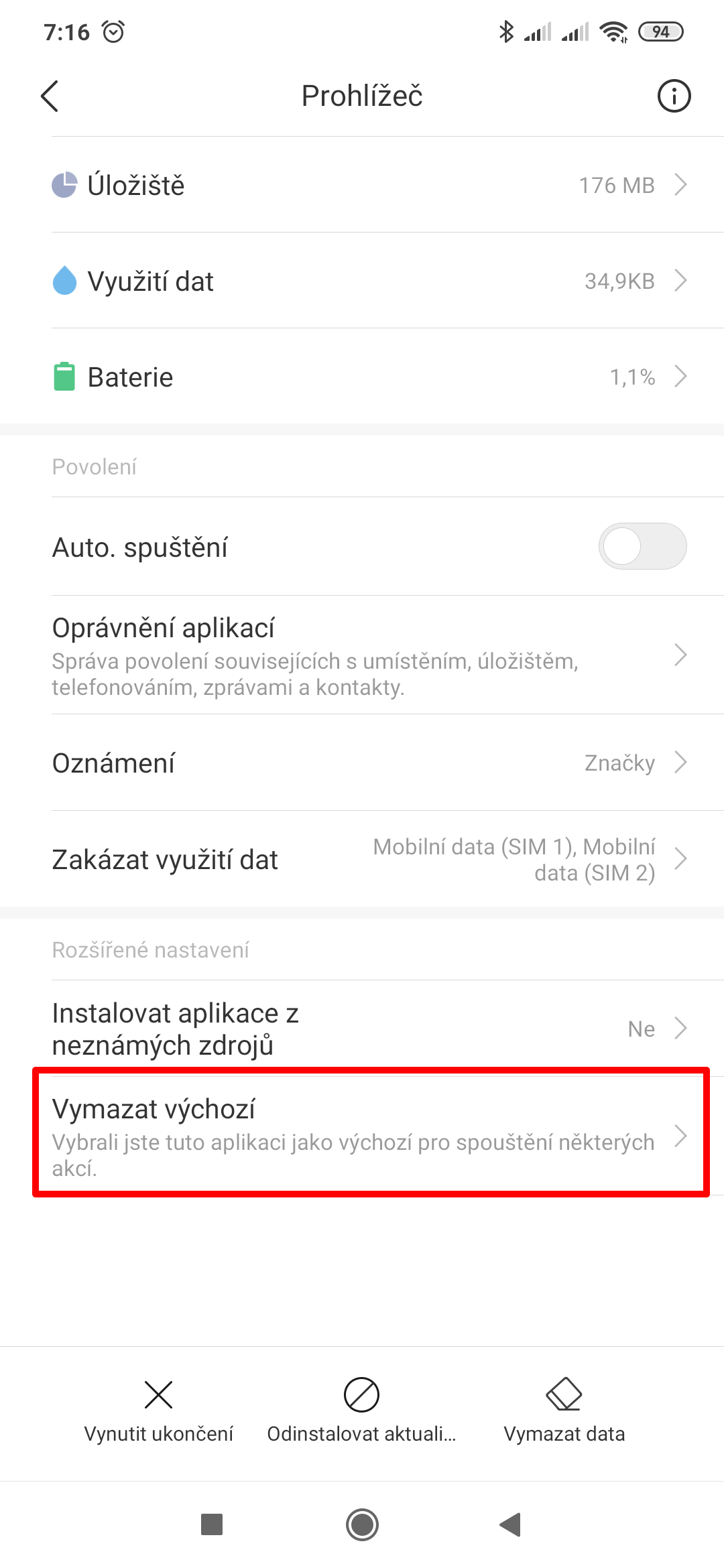 Pokud je v telefonu více aplikací s podobným účelem (například webových prohlížečů), zobrazí se v některých situacích dialogové okno s nabídkou, který z programů hodláte využít. V něm můžete některou aplikaci označit jako výchozí (tj. necháte aktivní volbu Zapamatovat) – následně se již dotaz na výběr nezobrazuje a automaticky je spouštěna vybraný program. Co když se rozhodnete své rozhodnutí změnit, nebo prostě jen chcete mít zase na výběr? Pak stačí vymazat výchozí nastavení.