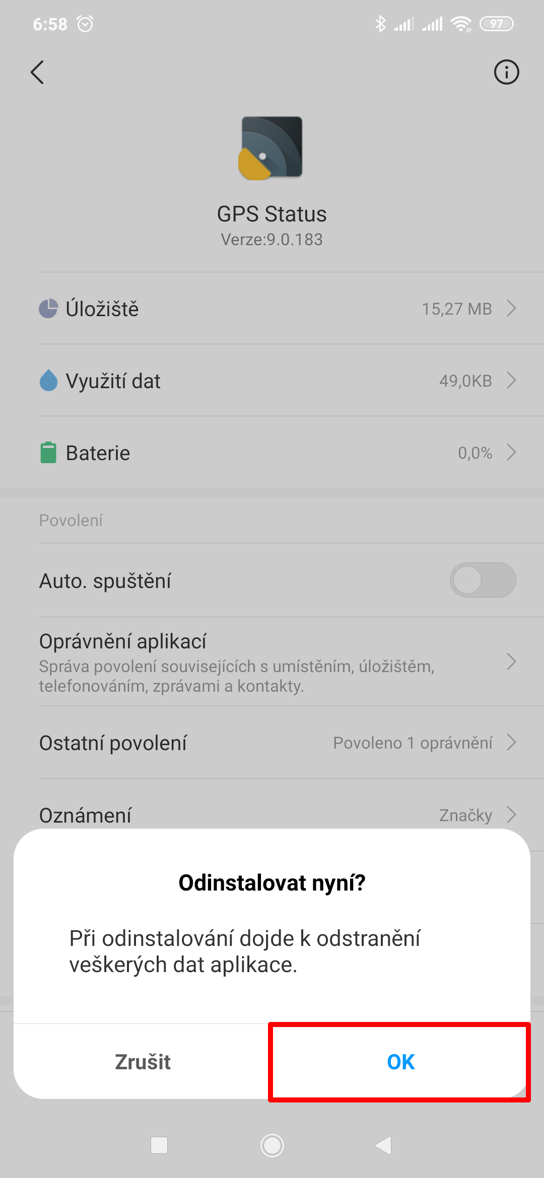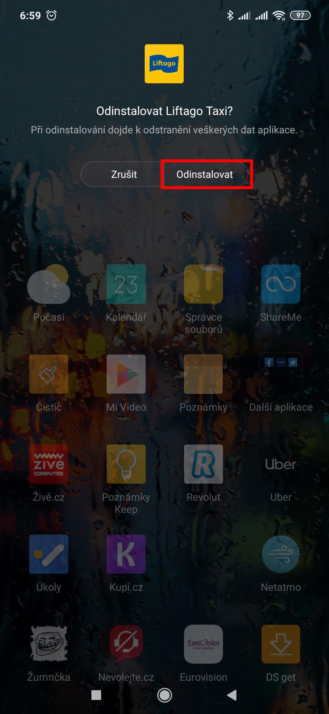 - Potvrďte, že chcete aplikaci Odinstalovat.