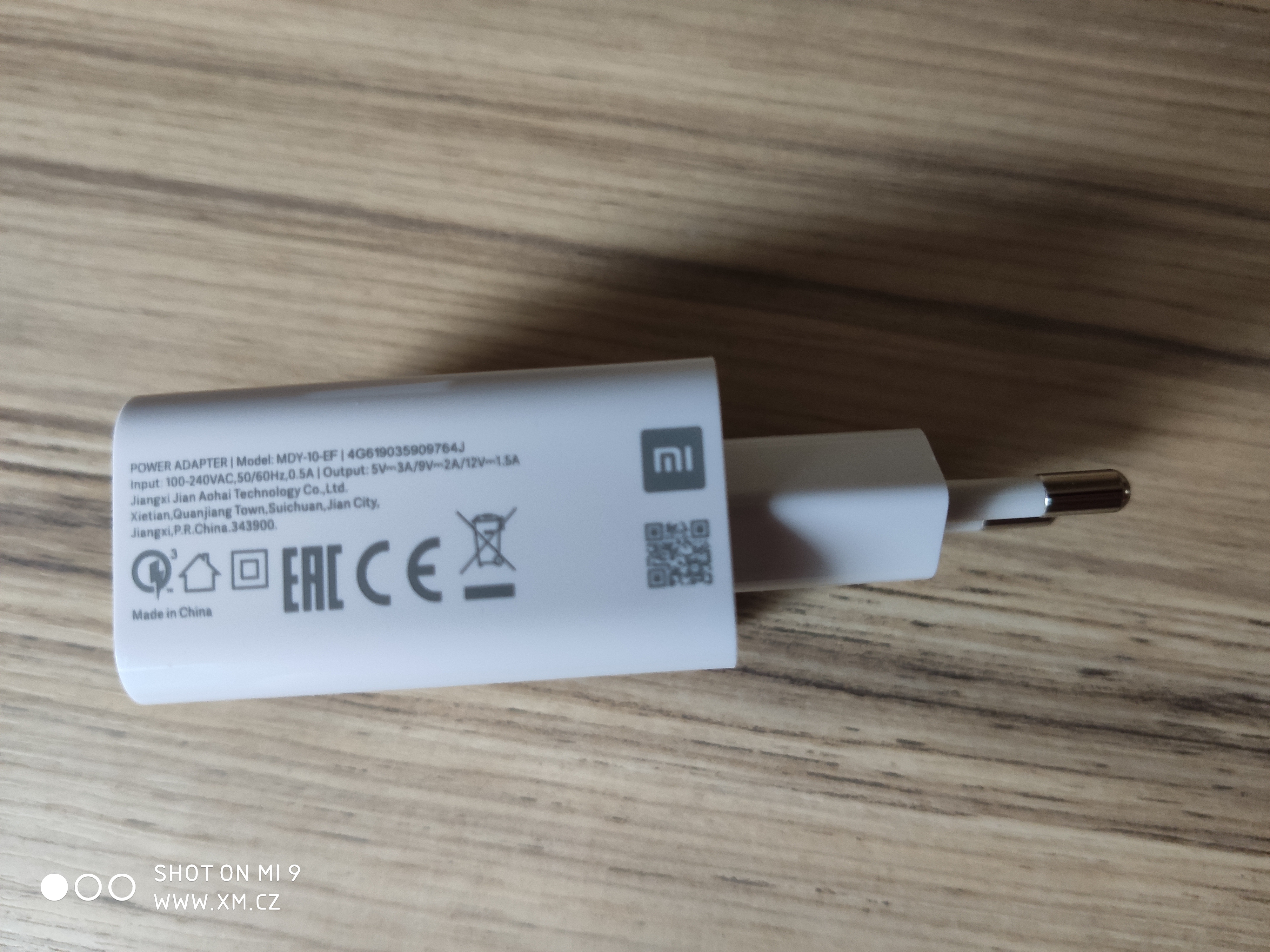 Potěšilo nás, že výrobce přiložil k telefonu nabíječku, která maximálně využívá jeho potenciál rychlého nabíjení Qualcomm Quick Charge. Adaptér má výstup 5 V@3 A/9 V@2 A/12 V@1,5 A, tedy maximálně 18 wattů, což je i nejvyšší výkon, kterým lze Mi 9 SE nabíjet.