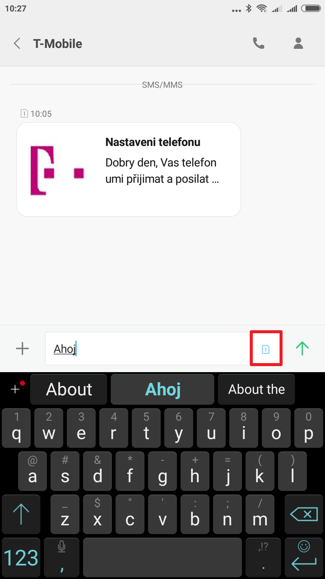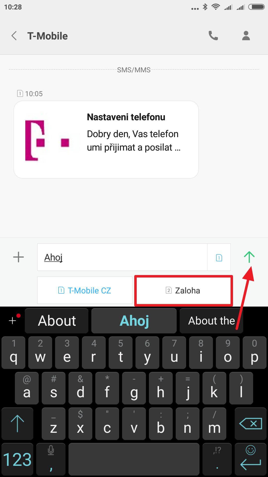 4. Zvolte, ze které SIM má být zpráva odeslána a odešlete ji tlačítkem se šipkou.