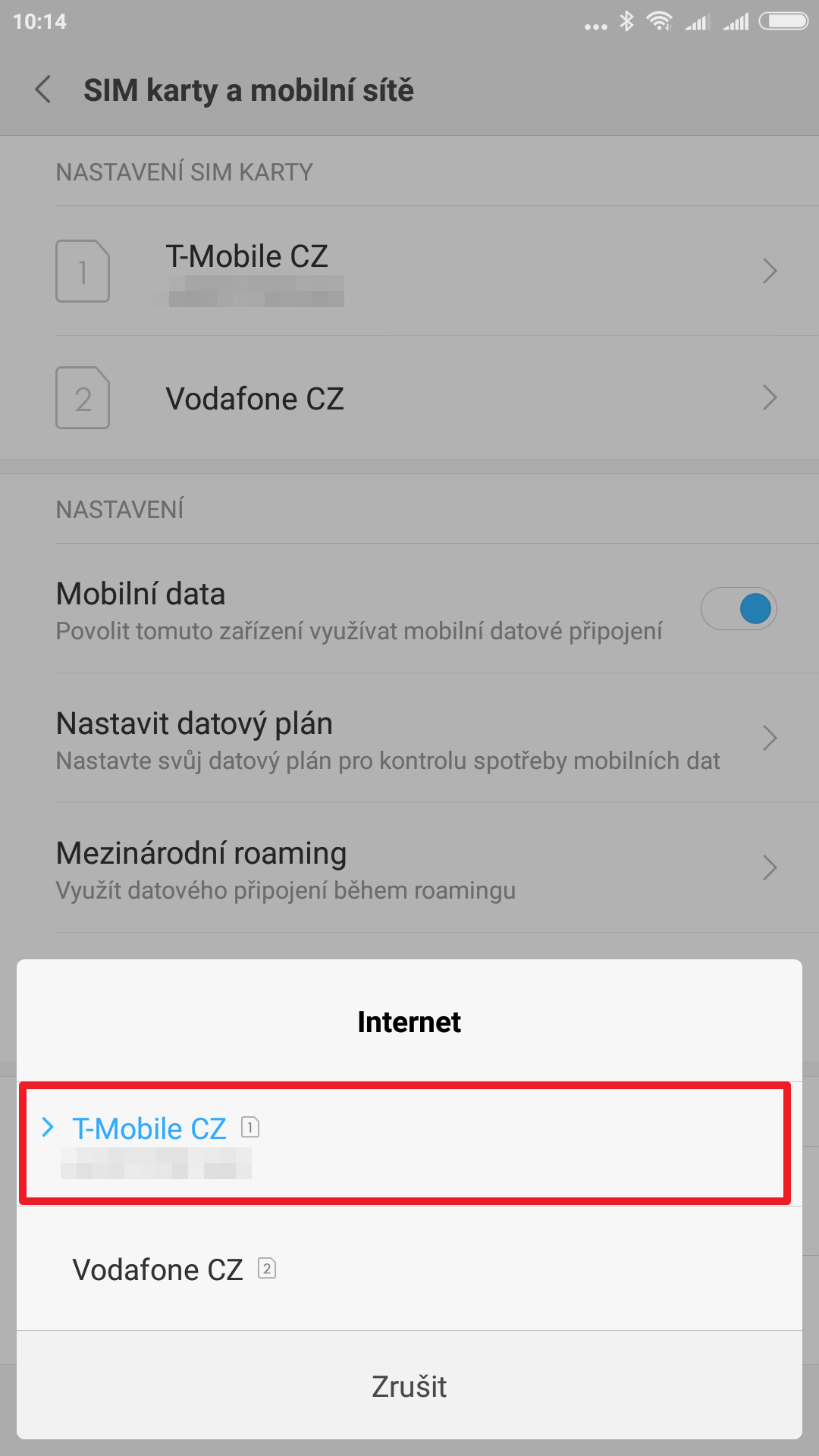 Jak nastavit výchozí SIM pro připojení k Internetu?