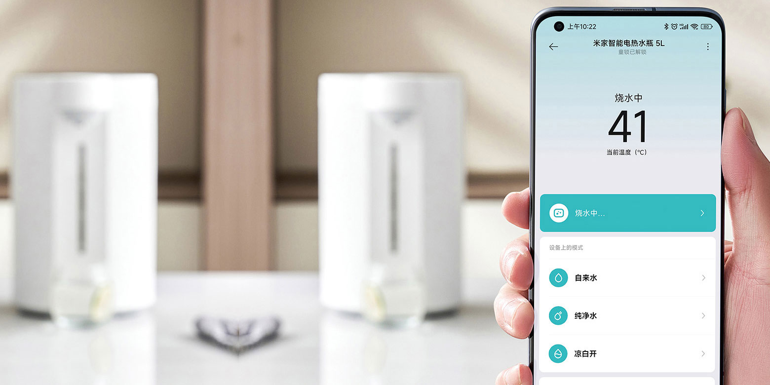 Přístroj je vybaven uživatelsky přívětivým dotykovým ovládacím panelem, na kterém lze nastavit teplotu vody v rozmezí od 40 °C do 90 °C. Lze ho také přes Wi-Fi (podporuje standardy 802.11b/g/n v pásmu 2,4 GHz) propojit s mobilní aplikací Xiaomi Home a následně nastavovat teplotu a ovládat celé zařízení z telefonu.