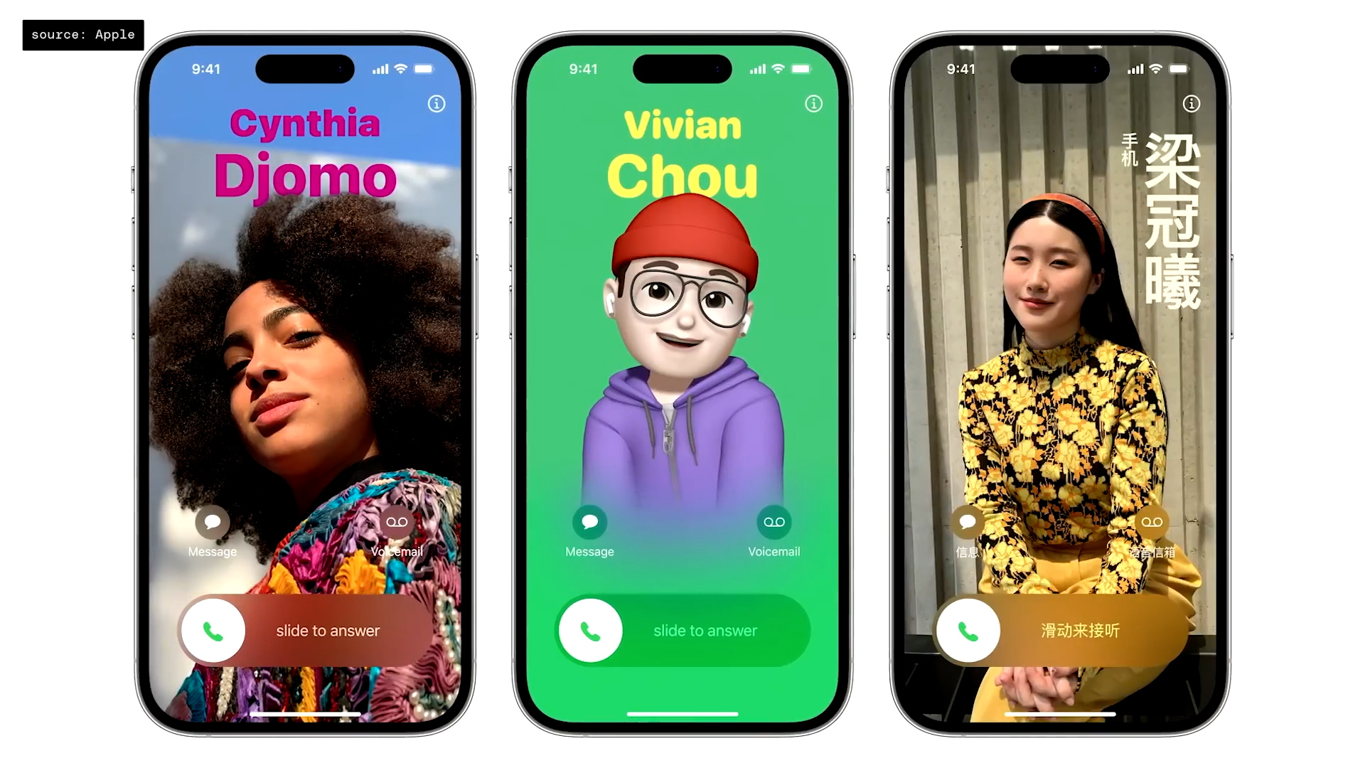 Začněme těmi kosmetickými. Nově si můžete sami pro sebe (myšleno jako pro váš vlastní profil) nastavit tzv. „Contact poster„. Jednoduše si sami vyberete nějakou svou fotku, vyberete si font, jímž bude uvedené vaše jméno, jeho barvu a to je asi vše. Tato obrazovka se pak bude zobrazovat jako příchozí hovor od vás dalším uživatelům.