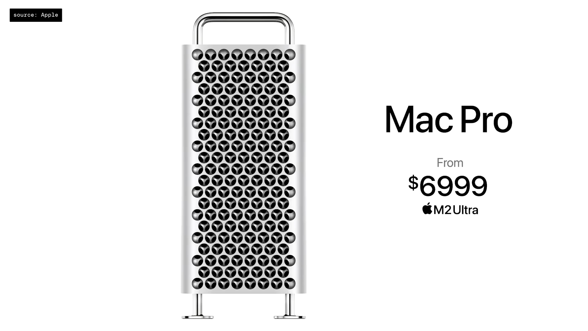 Další očekávanou novinkou bylo krátké a stručné představení nového čipu M2 Ultra, který opět, jak už to tak u Applu bývá, vznikl sloučením dvou čipů M2 Max. Tady už je výkon opravdu extrémní a popravdě nevím kam až chce Apple v dalších letech zajít. A i proto došlo k představení novinky, kterou mnoho z nás neočekávalo. Spíše naopak. Zatímco většina spekulantů hádala ukončení výroby produktu Mac Pro, který by byl nahrazen právě malým Macem Studio, Apple se rozhodl předražený počítač s designem struhadla v nabídce ponechat. A co víc, inovovat ho. Nově tedy Mac Pro přichází o procesor od Intelu, který je tak nahrazen super výkonným Apple Silicon M2 Ultra. A samozřejmě si tento počítač odnáší cenu za nejdražší zařízení letošního WWDC, protože jeho cena začíná na 6999$.