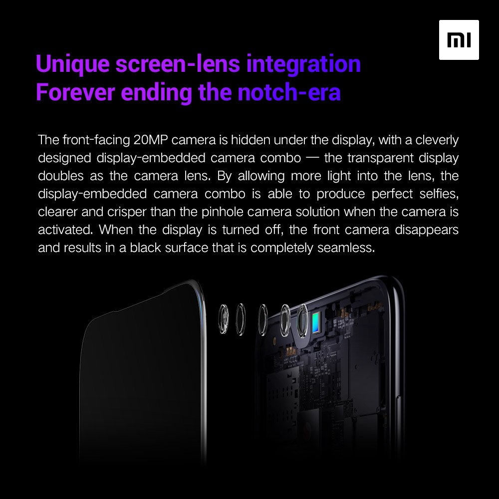 Zakladatel a prezident Xiaomi Lin Bin publikoval na čínské sociální síti Weibo kratičké video, které ukazuje, že firma pracuje na smartphonu s „neviditelným“ předním fotoaparátem, integrovaným přímo do obrazovky. Zde se konkrétně jedná o prototyp, implementovaný do stávající vlajkové lodě Xiaomi Mi 9.