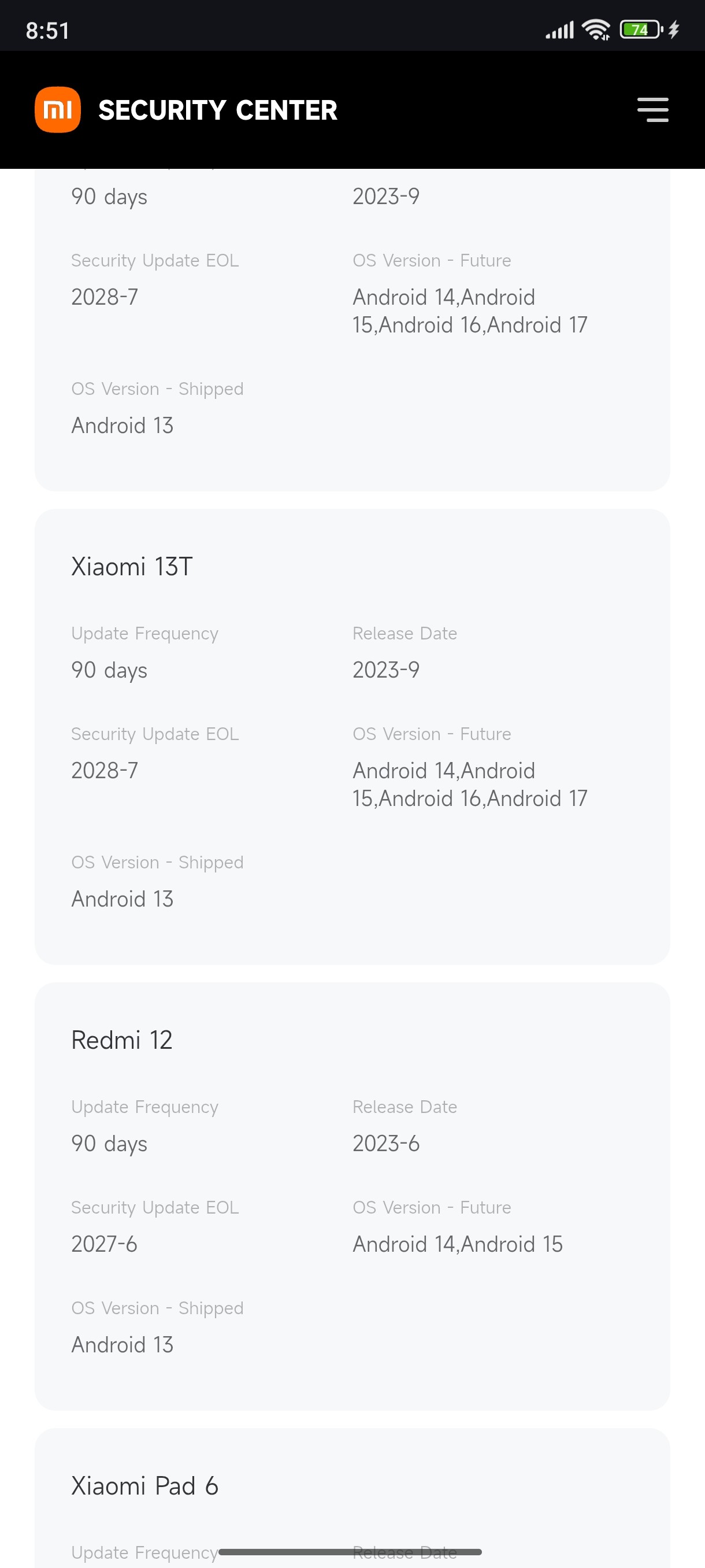 Tak já vím že na Xiaomi 13T budu mít ještě android 17 a lidi si to můžou najít tady https://trust.mi.com/misrc/updates/phone?tab=aerdata